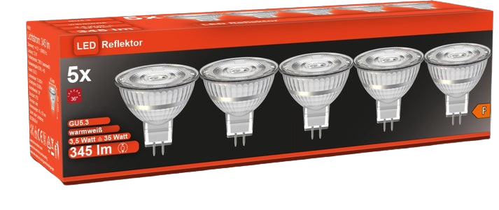 5x LED Strahler GU5,3 (MR16) 3,5W 345lm warmweiß 36° Aktion