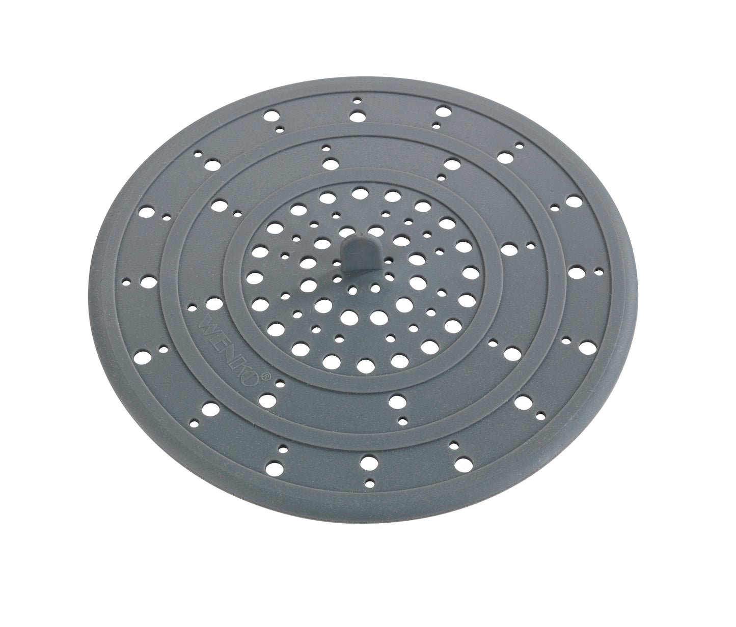 Mit dem praktischen Abfluss-Sieb Silikon von WENKO gehören verstopfte Abflussrohre und daraus resultierende unangenehme Gerüche aus dem Wasch- oder Spülbecken der Vergangenheit an. Der pfiffige Haushaltshelfer sorgt dafür, dass grobe Rückstände nach dem Abwasch oder auch nach dem Duschen direkt vom Sieb abgefangen werden, bevor sie die Abflussrohre verstopfen. Das graue Silikonsieb eignet sich durch seine Größe von (B/T x H): Ø 12 x 0,3 cm für alle gängigen Spülen, Waschbecken- und Wannenabflüsse. Es wird einfach über den Abfluss gelegt: Die aufgefangenen Rückstände können bequem in den Hausmüll gegeben werden. Das Sieb lässt sich bei Verschmutzung leicht mit einem feuchten Tuch oder unter fließendem Wasser reinigen. Ein kleiner Helfer mit großer Wirkung.