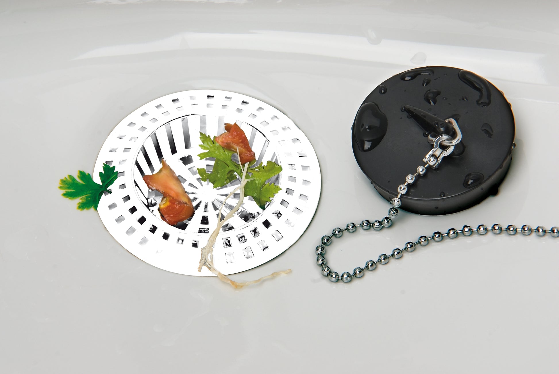 - Sammelt kleine Küchenreste im Spülbecken zur einfacheren Entsorgung