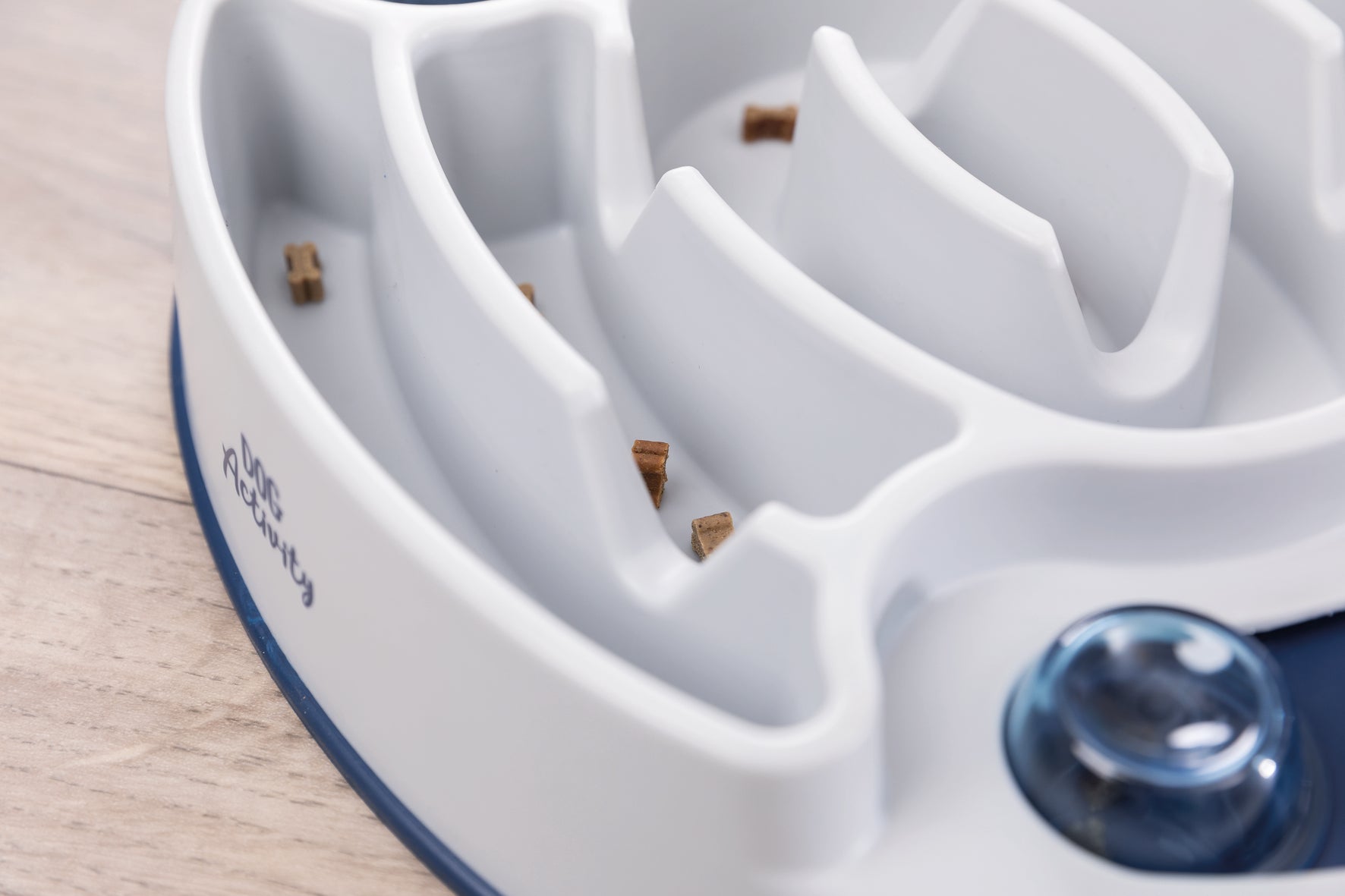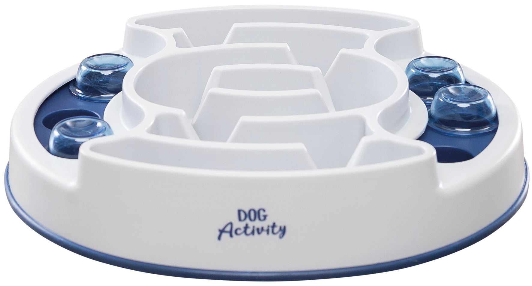 Da Hunde sehr intelligente und wissbegierige Tiere sind, wollen sie regelmäßig beschäftigt werden. Das Activity-Spiel „Slide and Feed" hilft dabei: Das Spielbrett hat in der Mitte mehrere Rillen und außen kreisförmige Vertiefungen, die mit Schiebeelementen verdeckt werden können.