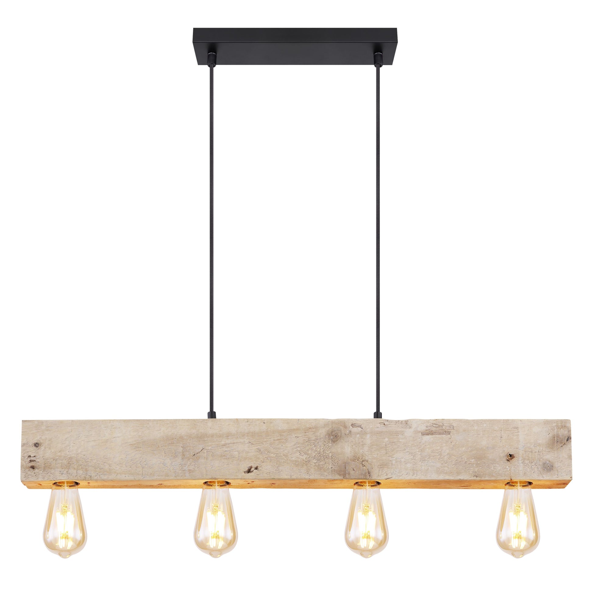 Die schlichte Pendellampe Adalie lässt sich mit mehreren Wohnstilen perfekt kombinieren. Ob traditioneller Landhausstil, Vintage oder modern, der 80cm lange Holzbalken passt einfach überall hin. Die Höhe der Leuchte lässt sich bei der Montage beliebig bis auf max. 120cm anpassen. Die vier E27 Fassungen des Balkens können von Ihnen nach Belieben bestückt werden (max. 60W), dadurch können Sie neben der Leuchtmittelform auch über die Lichtstärke und Lichttemperatur entscheiden. Mit weiteren Modellen der gleichen Serie können Sie das Bild in Ihren vier Wänden komplettieren.