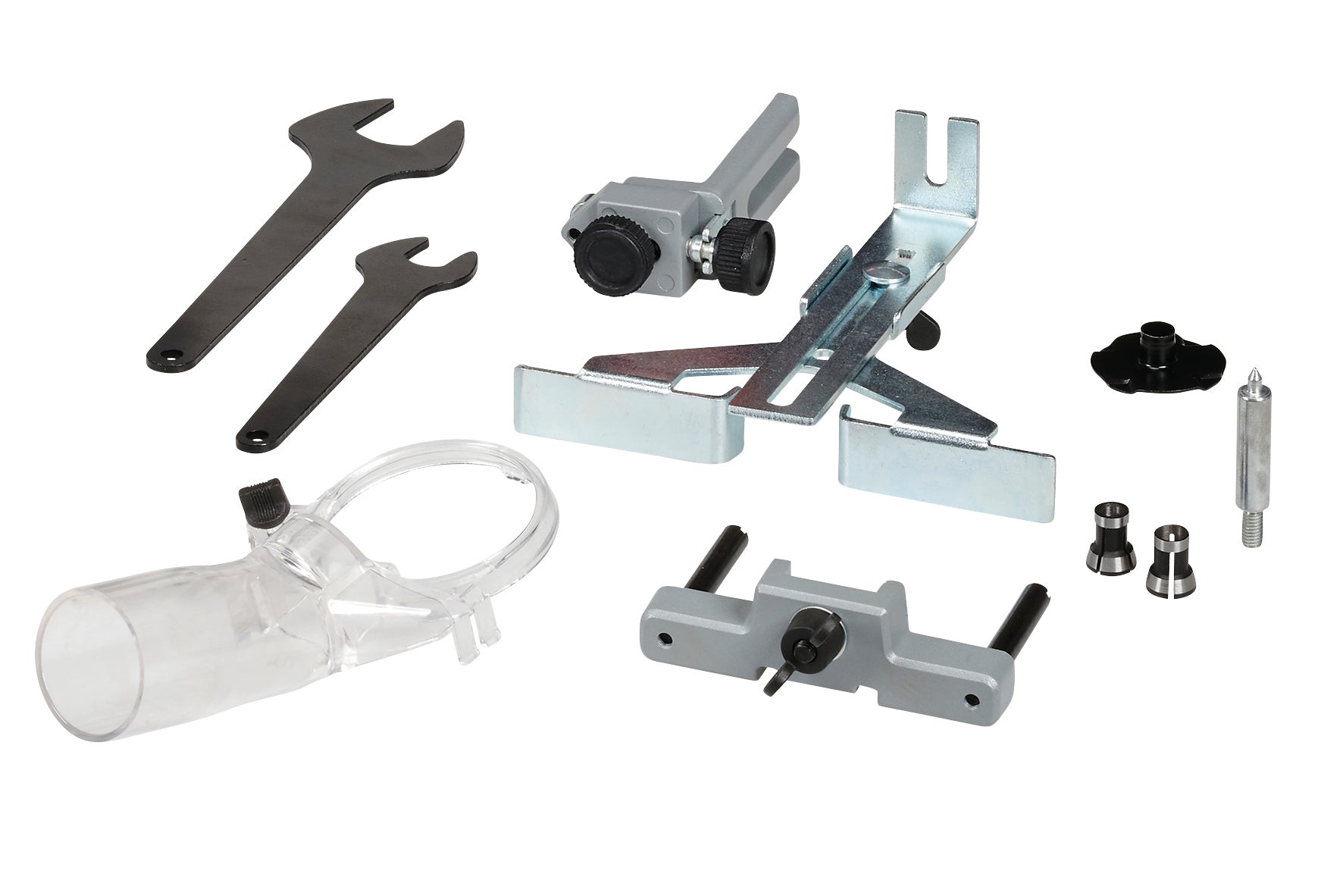 - Inkl. Parallelanschlag, Zirkelspitze, Führungsrolle, Kopierhülse