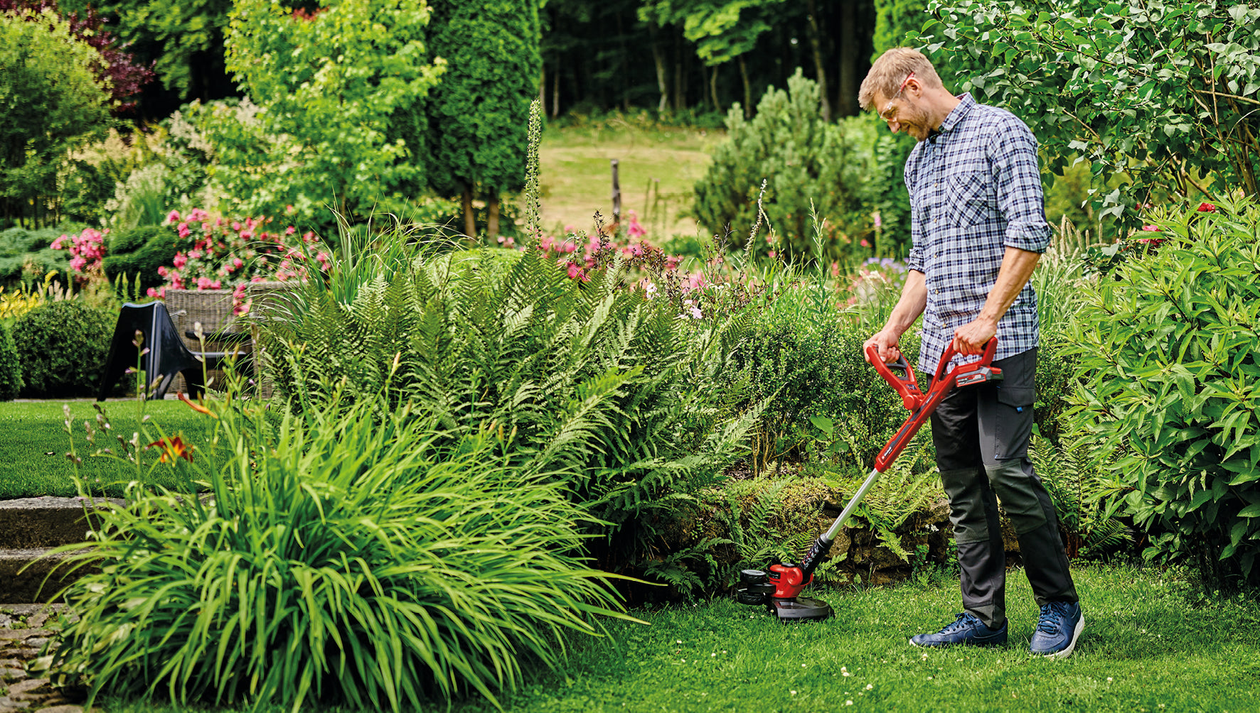 Der Einhell Akku-Rasentrimmer GE-CT 18/30 Li-Solo sorgt für den perfekten Rasen. Ob Ränder, Flächen, Ecken, Kanten: Nichts ist für den kabellosen Gartenhelfer ein Problem. Dabei hilft das einfache, schnelle & bequeme Teleskopieren des Führungsholms. Der verstellbare Zusatzhandgriff sorgt für ein angenehmes Handling, der Softgrip bietet perfekten Komfort. Der Motorkopf ist um 90° drehbar für senkrechte Flächen und Rasenkanten. Inklusive Führungsrad ist so das präzise Kantenschneiden möglich. Zudem ist er dreifach neigbar und gewährleistet dadurch flexibles Arbeiten unter Büschen oder anderen Hindernissen. Der Flowerguard schützt Pflanzen und Bäume vor Beschädigungen. Im Lieferumfang enthalten ist eine Fadenspule (5m), die Tipp-Automatik sorgt für die praktische Nachführung des Fadens je nach Bedarf. Betrieben wird der Rasentrimmer mit einem 18 V-Akku der Power X-Change-Serie. Akkus dieser Systemfamilie sind untereinander austausschbar. Die Lieferung erfolgt ohne Akku und Ladegerät. Diese sind separat erhältlich, zum Beispiel als praktisches Starter-Set.