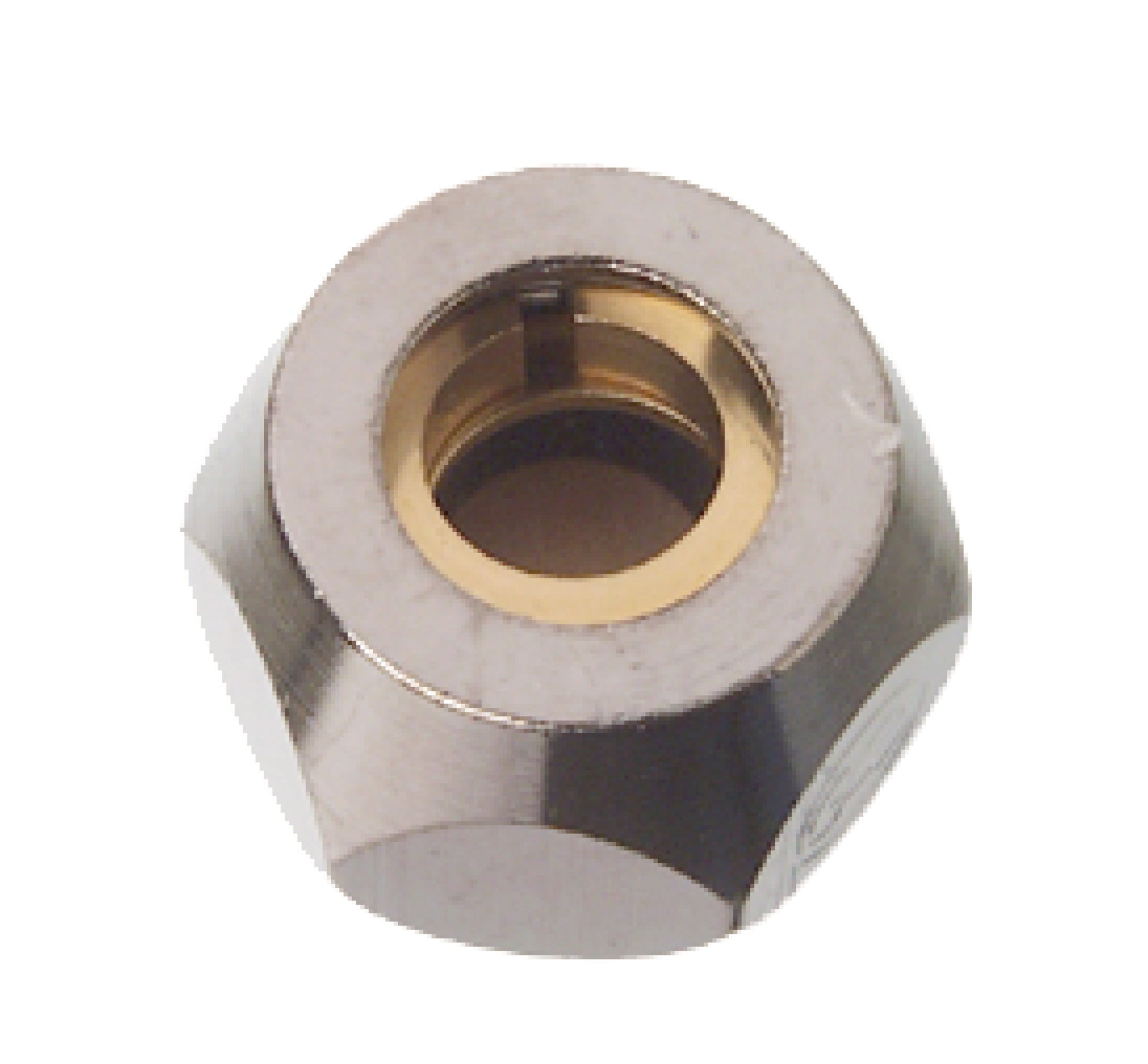 Messing verchromt" Für ArmaturenanschlussrohreBestehend aus:" Überwurfmutter" Klemmring konisch" Gleitring" Gummi-Quetschdichtung" 3/8" IG, ø 10 mm