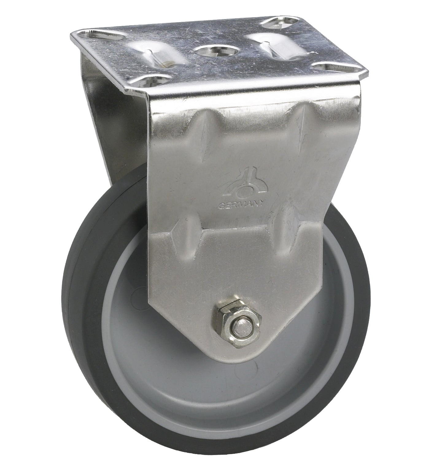 Gehäuse: verzinktes Stahlblech; Rad: Felge Kunststoff, Lauffläche TPE, Gleitlager; ; Achtung: Rollen mit TPE-Rädern nicht auf unversiegeltem, saugfähigem Untergrund wie Stein oder Parkett einsetzen. Das produktionsbedingt enthaltene Weißöl kann Flecken hinterlassen. Bei versiegelten Böden verfliegt dieses Öl rückstandsfrei.