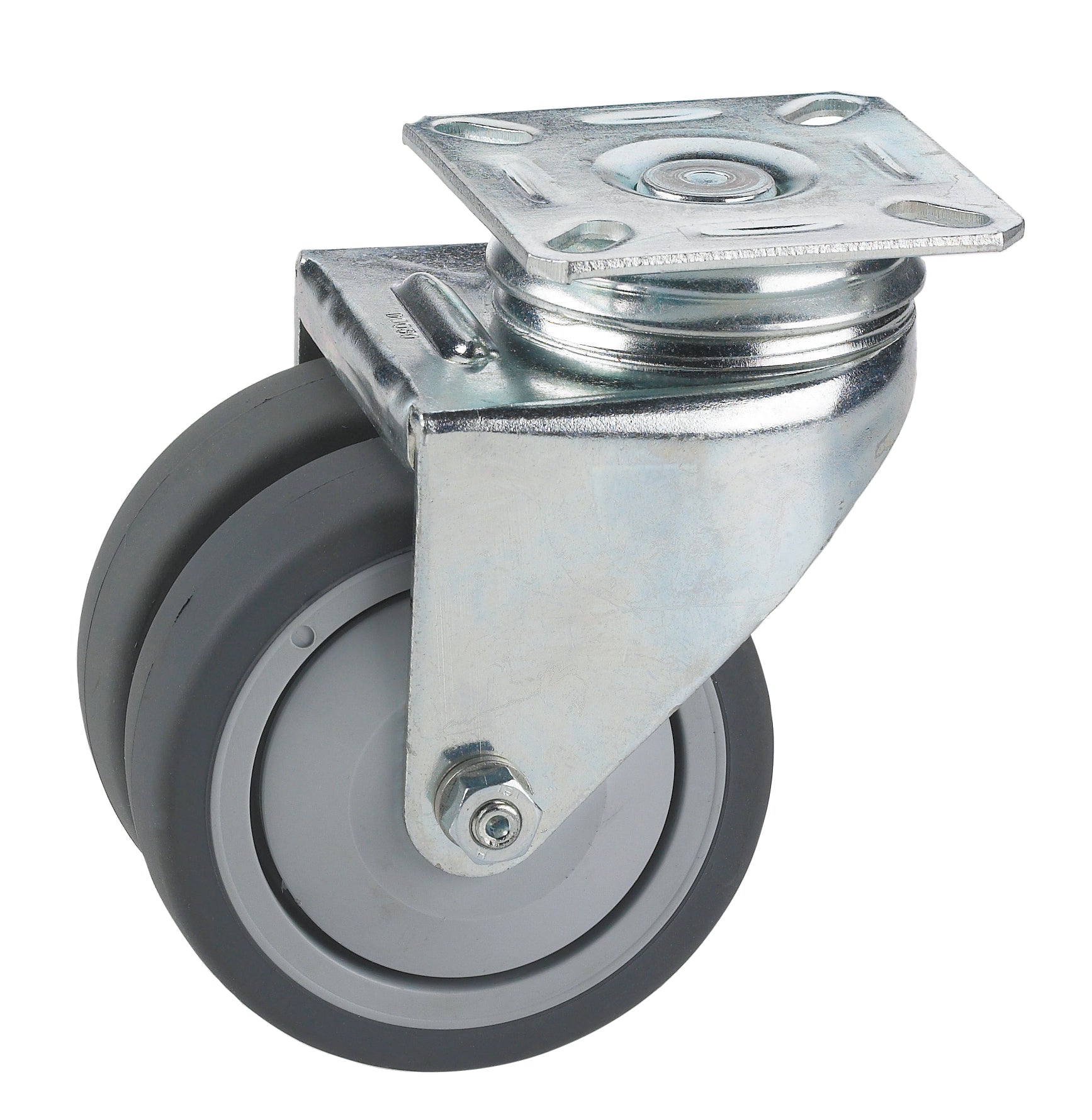 Apparate-Doppel-Lenkrolle, TPE-Lauffläche, 75x25 mm, Tragkr. 100 kg Platte 60x60 mm
