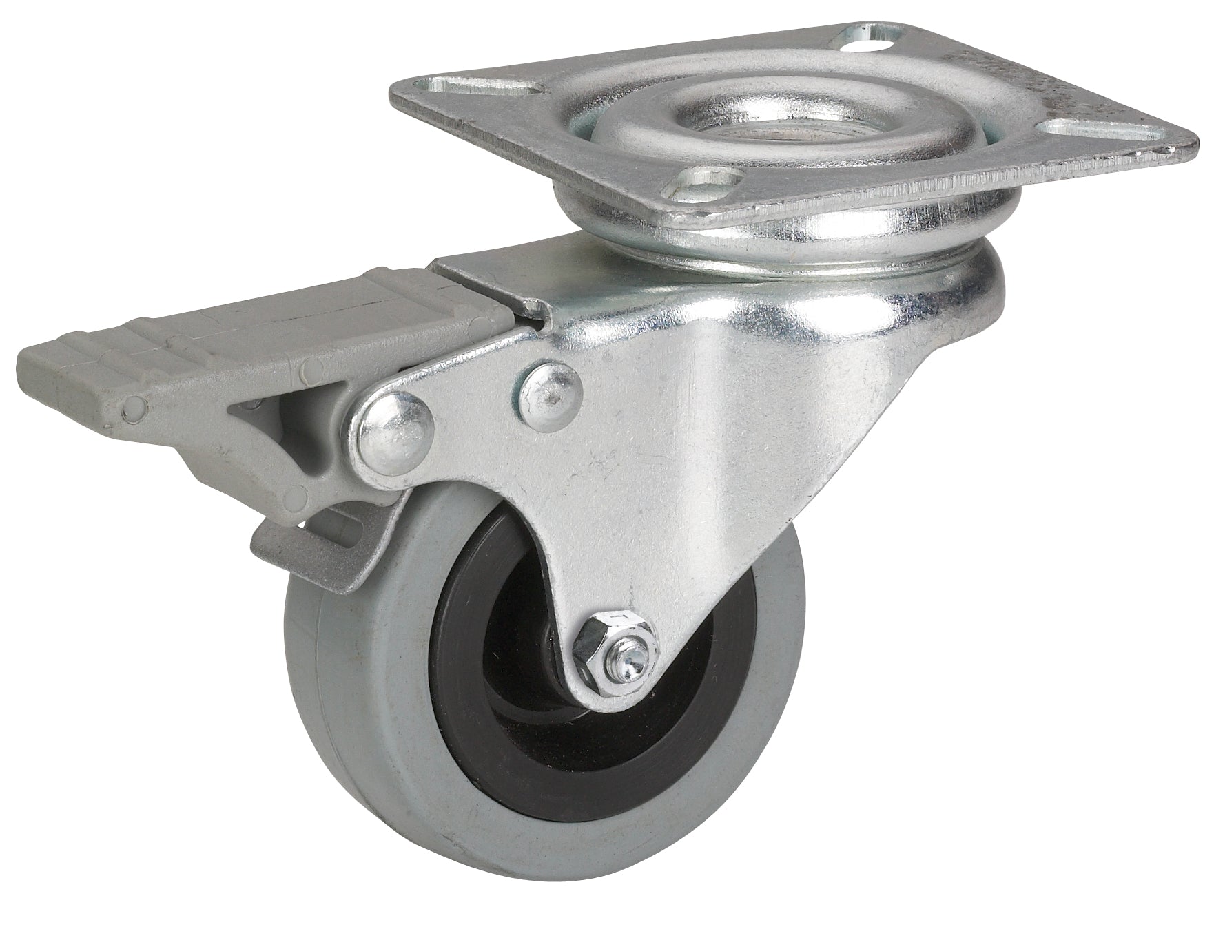 Apparate-Lenkrolle, Gummireifen, 50x20 mm, Tragkr. 35 kg Platte 42x42 mm, Feststeller