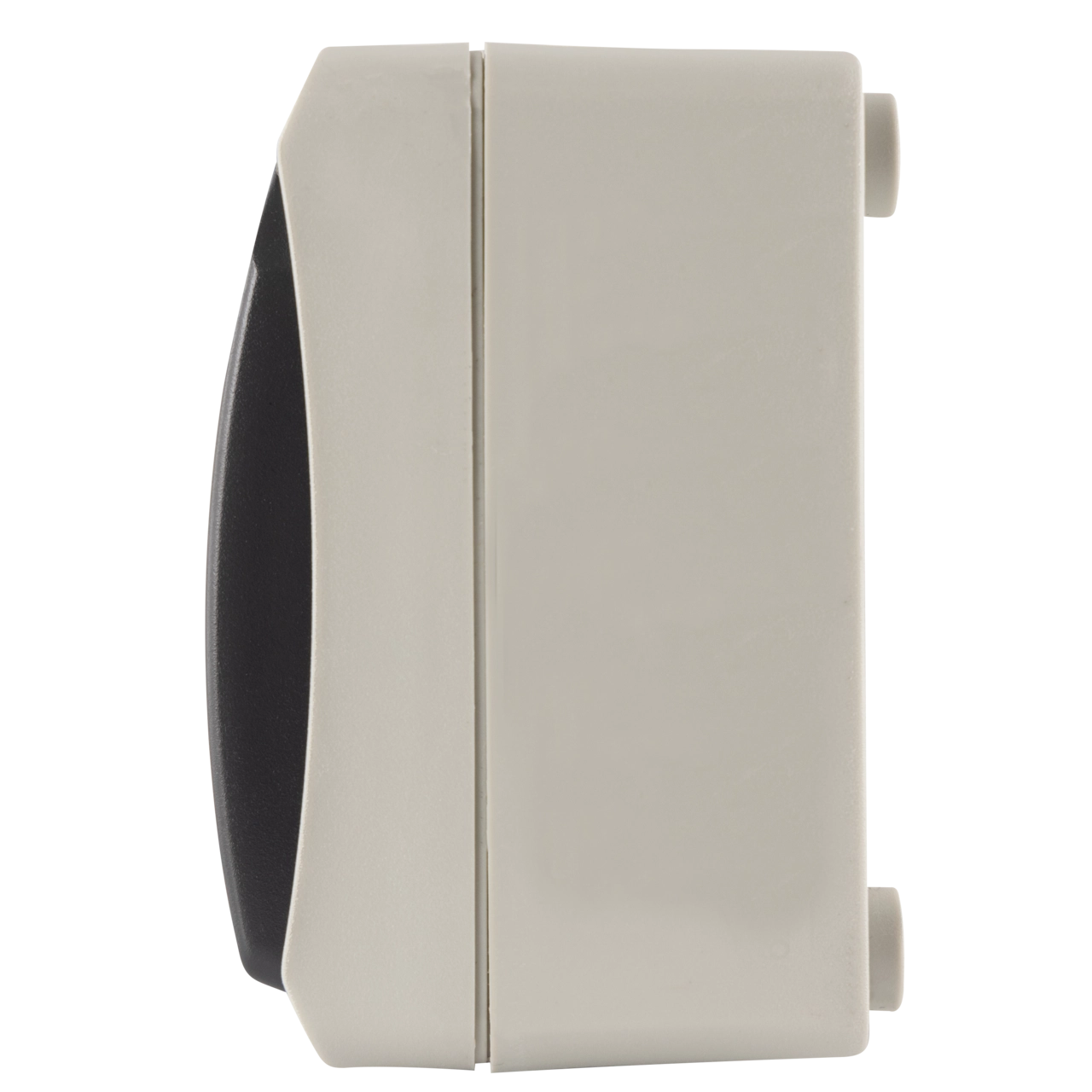 Das Kombigerät aus Schalter und Steckdose der Aquabase-Serie von REV verbindet zwei Funktionen in einem kompakten Aufputzmodul. Durch die Schutzart IP44 eignet sich dieses Gerät für den Einsatz im Außenbereich oder in Feuchträumen wie Waschküche oder Terrasse. Die Kombination aus Schalter und Steckdose spart Platz und sorgt für einheitliches Design.