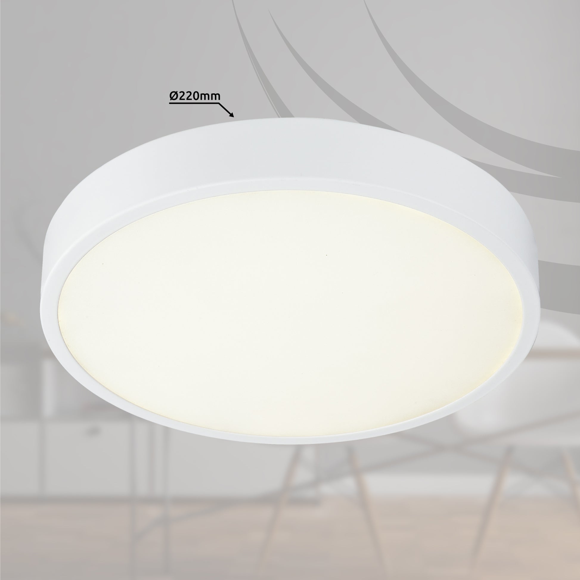 Diese runde Deckenleuchte (Ø 220 mm) aus der Serie Archimedes besticht durch ihr schlichtes Design. Das Opal-Acrylglas wird umrandet von einem Aluminium Druckgußrahmen. Durch ihr Aussehen ist diese Innenleuchte universell einsetzbar. Diese Allrounderlampe leistet bis zu 2520 Lumen starkes Licht und ist je nach Bedarf dimmbar. Dank dem integrierten 28 Watt LED Leuchtmittel erstrahlt Ihr Raum in wunderbar angenehmen 4000K. Durch andere Modelle dieser Serie können Sie das Bild Ihres Lebensraumes weiter verschönern.