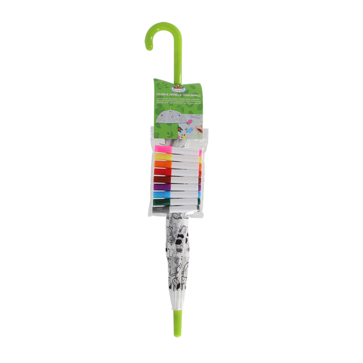 Verwandle trübe Regentage in ein farbenfrohes Abenteuer mit dem "Paint It Yourself" (PIY) Regenschirm Nutztiere (Artikelnummer KG280)! Dieser zauberhafte Regenschirm aus der "Kids in the Garden"-Kollektion lässt Kinder ihre eigene Kreativität entfalten und macht jeden Spaziergang im Regen zum Highlight.