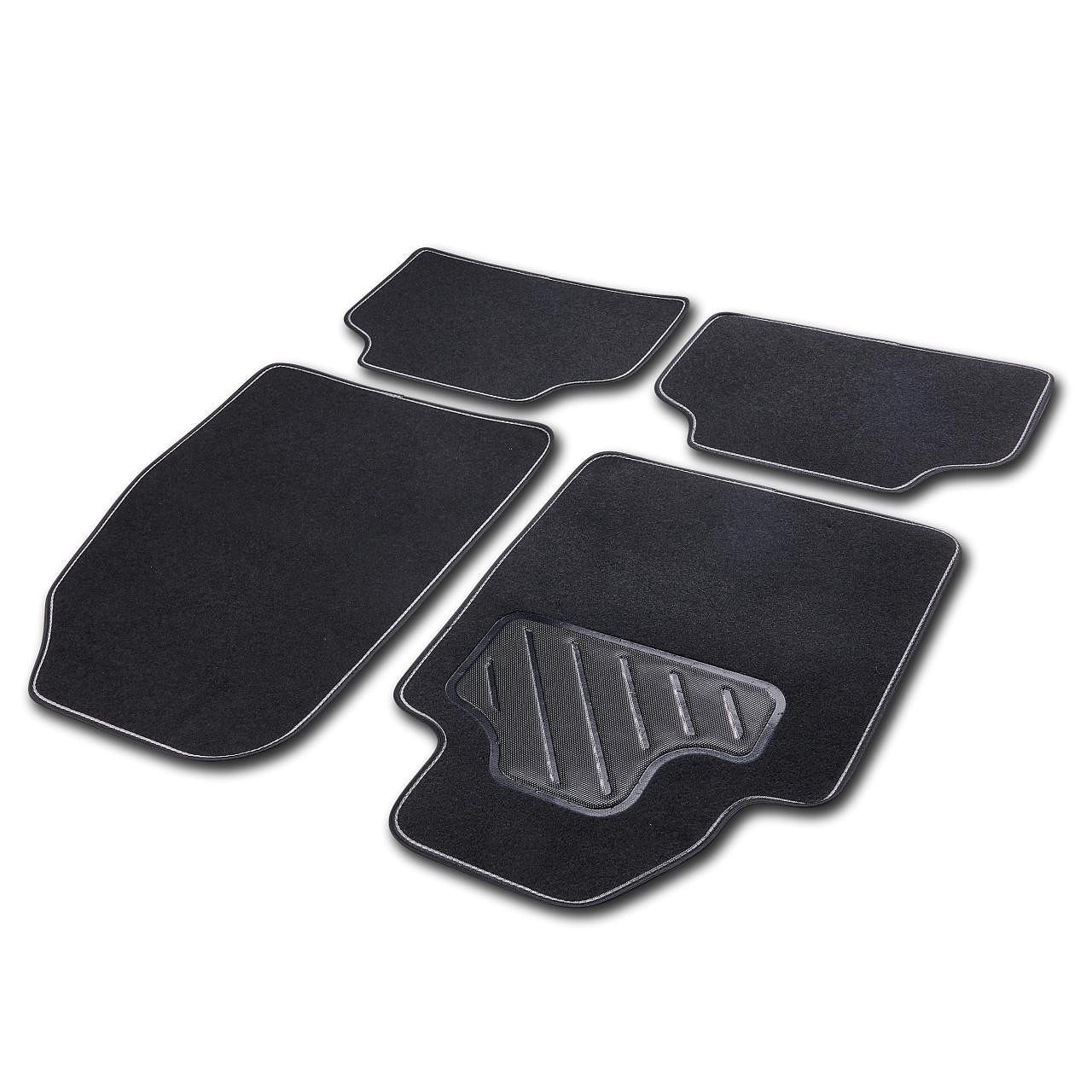 " Vierteiliges Fußmattenset mit gelber Ziernat " Fußmattenset besteht aus witterungsbeständigem Nadelfilz mit rutschfestem Untergrund " Durch Universalschnitt für viele gängige Fahrzeugtypen geeignet " Verstärkter PVC-Absatzschoner auf der Fahrerseite verhindert das Durchscheuern der Matte durch das Betätigen der Pedale " Kettelung aus schwarzem Hochglanzgarn " 4-teiliges Fußmattenset " witterungsbeständig mit rutschfestem Untergrund " PVC Absatzschoner " Umrandung mit gelber Ziernaht " universell passend