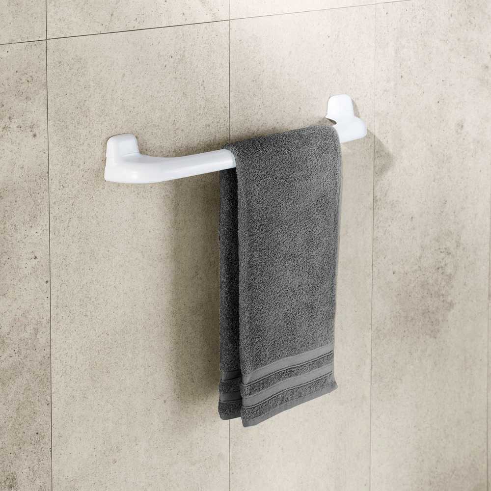 Die dekorative Badetuchstange aus der Bad-Accessoires Serie PURE bringt schlichte Eleganz in jedes Bad. Die 60 cm extra lange Aufhangstange bietet ausreichend Platz für große Badetücher oder mehrere Handtücher. Der praktische Halter hält alle Hand-, Dusch- und Badetücher stets am gewünschten Platz griffbereit. Die Badetuchstange ist hochwertig aus stabilem Kunststoff verarbeitet und bietet eine extra glatte Oberfläche für eine schnelle und hygienische Reinigung. Im Lieferumfang sind Schrauben und Dübel enthalten.