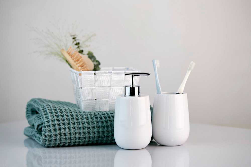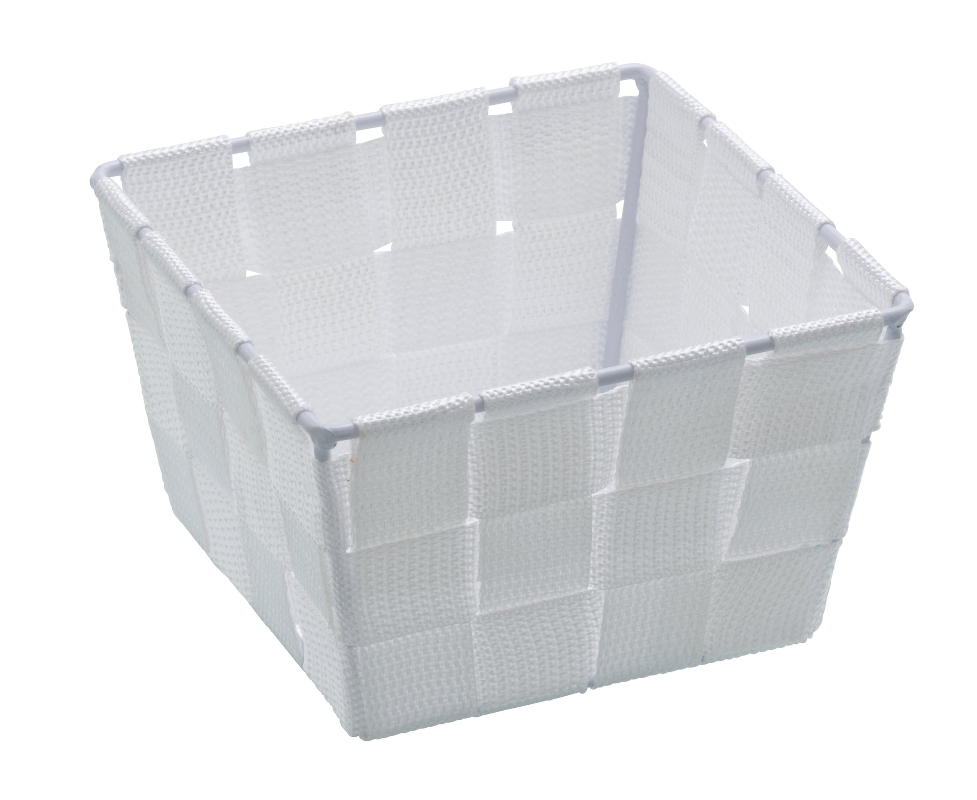 Das moderne Aufbewahrungskörbchen Adria Mini Quadratisch in Weiß sorgt für mehr Ordnung in Küche, Bad und Haushalt. Das praktische Organizer-Körbchen in trendiger Flechtoptik ist der ideale Aufbewahrungsort für alle Klein-Utensilien in Haus und Wohnung. Im Kinderzimmer oder Büro finden Spielzeugteile, Radiergummis, Geschenkbänder und vieles mehr in den praktischen Ordnungskörbchen übersichtlich einen Platz. In Kleiderschränken hilft die dekorative Box Schmuck, Wäsche oder Socken geordnet zu lagern. In der Küche finden kleine Küchenutensilien, Stifte, Blätter, usw. einen attraktiven Platz. Das strapazierfähige und hochwertige Kunststoff-Geflecht (Polypropylen) macht das Ordnen und Aufbewahren von Bad-Accessoires, Küchenhelfern, Spielzeug und vielem mehr zum Kinderspiel - gut verstaut und stets griffbereit verfügbar. Die Metallstangen sorgen für extra Stabilität - das hochwertige Flechtgewebe gibt dem Körbchen seine Festigkeit, somit auch für schwerere Gegenstände geeignet. Mit dem praktische Organizer Adria lassen sich ab sofort auch die kleinsten Utensilien der täglichen Routine gekonnt verstauen. Bitte beachten Sie, dass sich die Maßangaben auf die breitesten Stellen an der Oberseite des Korbes beziehen. Aufgrund der konischen Form sind die Badkörbe an der Unterseite etwas schmaler.