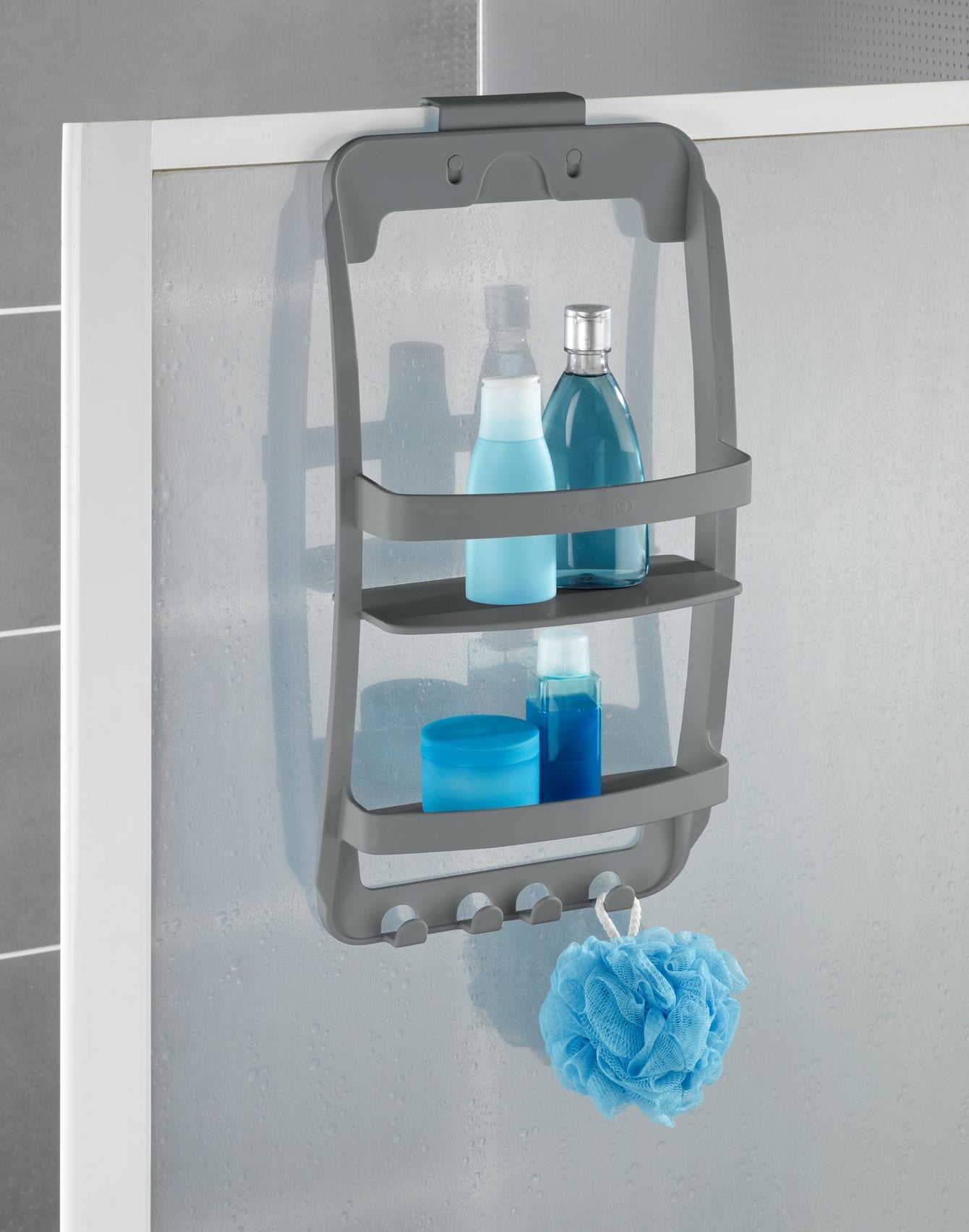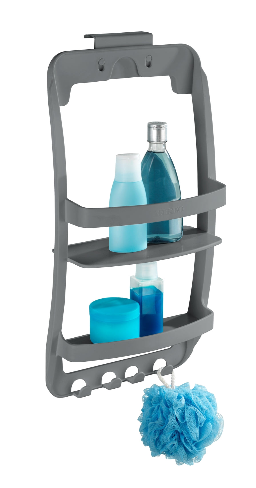 - Mit 2 Ablageflächen und 4 Haken zur Aufhängung von Duschschwämmen und Handtüchern