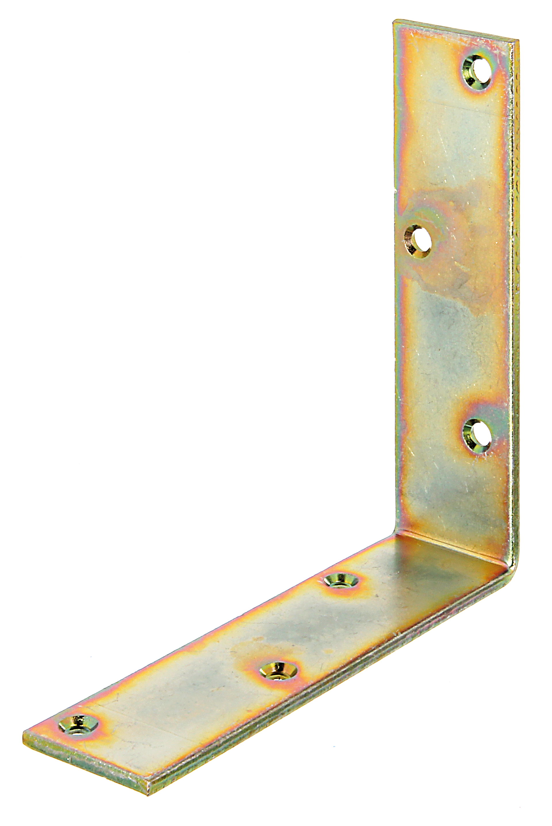Balkenwinkel, breit, gleichschenklig, mit versenkten Schraublöchern, Material: Stahl roh, Oberfläche: galvanisch gelb verzinkt, Tiefe: 150 mm, Höhe: 150 mm, Breite: 40 mm, Materialstärke: 4,00 mm, Anzahl Löcher: 6, Loch: #6 mm, CutCase