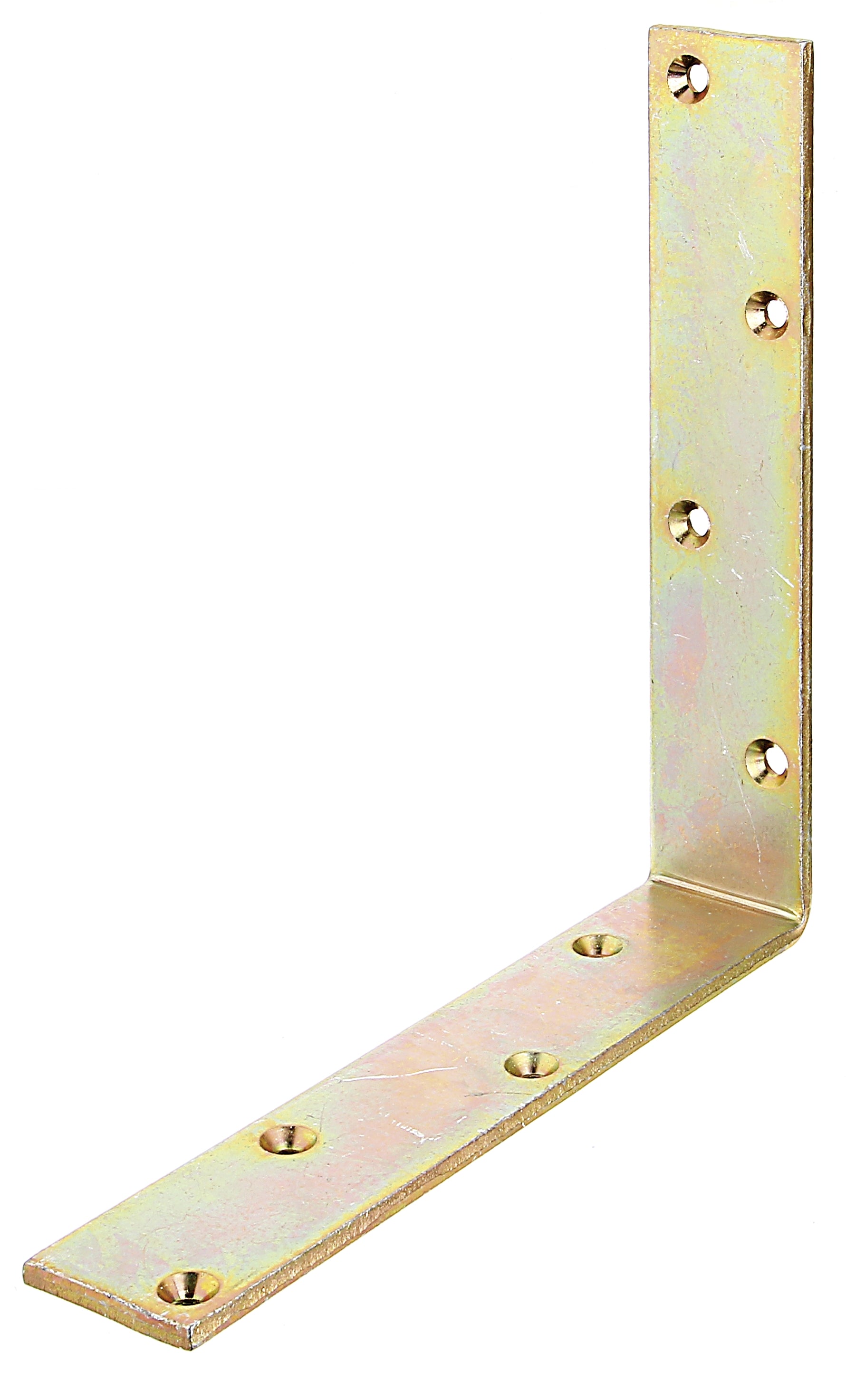 Balkenwinkel, breit, gleichschenklig, mit versenkten Schraublöchern, Material: Stahl roh, Oberfläche: galvanisch gelb verzinkt, Tiefe: 200 mm, Höhe: 200 mm, Breite: 40 mm, Materialstärke: 5,00 mm, Anzahl Löcher: 8, Loch: #6 mm
