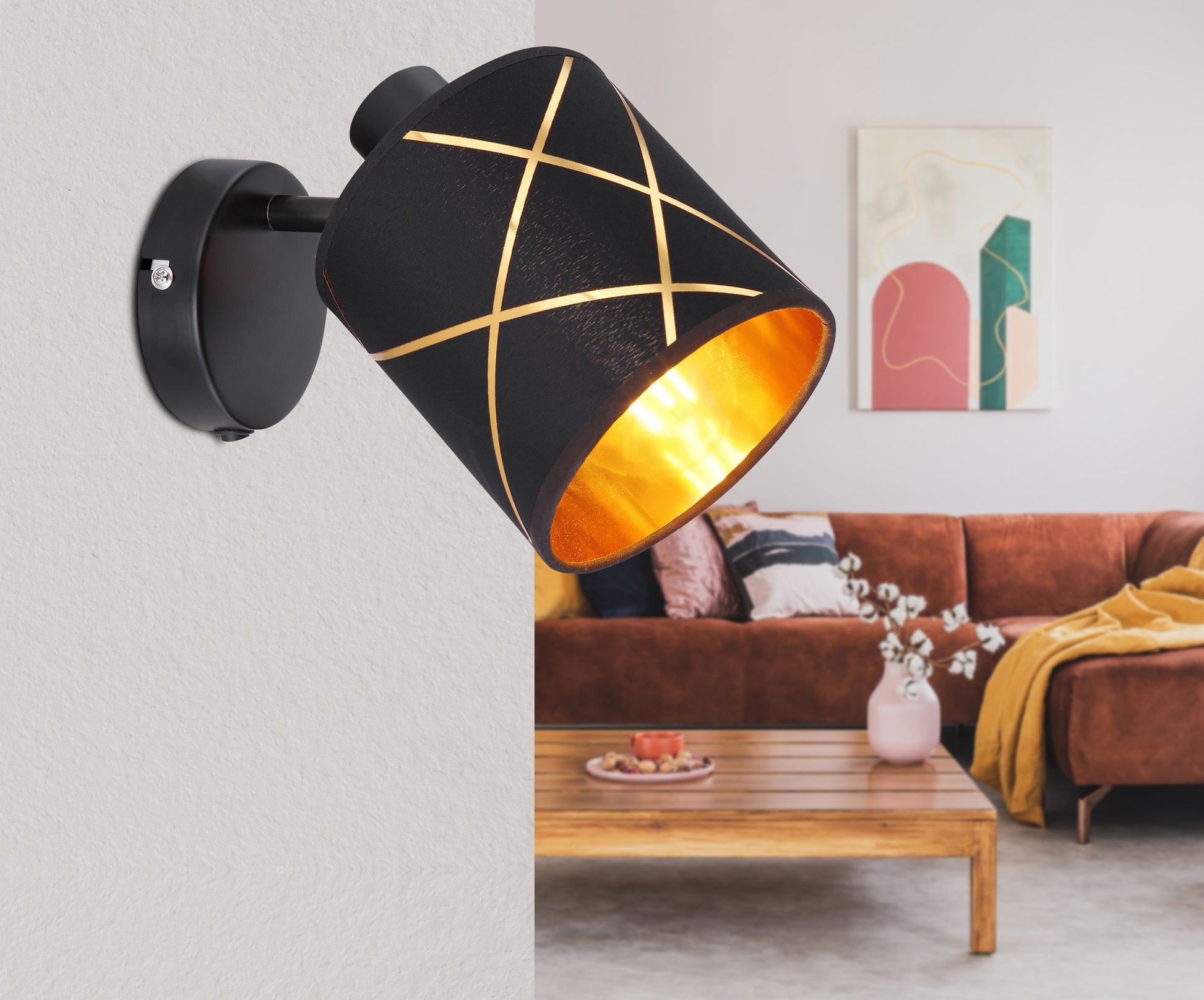 Der Wandstrahler der Serie Bemmo verfügt über einen Lampenschirm mit Dekorstanzung welcher das Licht, durch das an der Innenseite des Lampenschirms angebrachte goldfarbige Acryl wunderbar reflektier. Durch das E27 Gewinde wird Ihnen bei der Leuchtmittelwahl bezüglich Lichtstärke und -farbe freie Wahl gelassen (excl. 1xE27, 25 Watt). Aufgrund ihrer Langlebigkeit bzw. Stromersparnis empfehlen wir LED Leuchtmittel. Diese traditionelle Leuchte ist besonders für Schlaf-, Wohn- und Esszimmer geeignet. Weitere Modelle dieser Serie komplettieren Ihren Wohnraum.