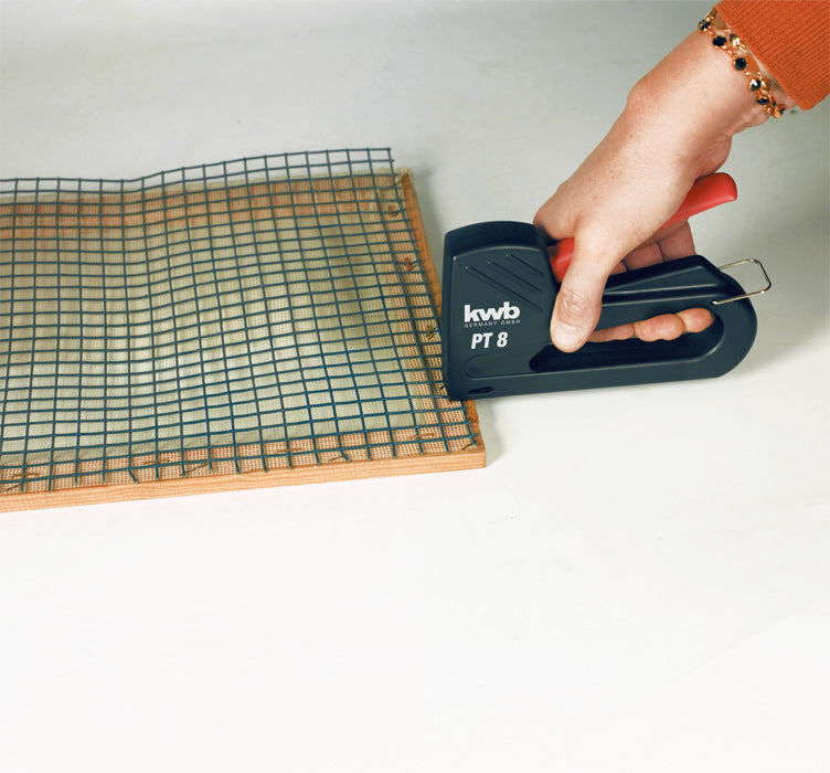 Der kwb BLUE TACK PT 8 Handtacker mit Schlagkraftregulierung für den professionellen Einsatz besteht aus glasfaserverstärktem Kunststoff. Der Tacker ist für Heftklammern vom Typ 053 bis 8 mm Länge geeignet.