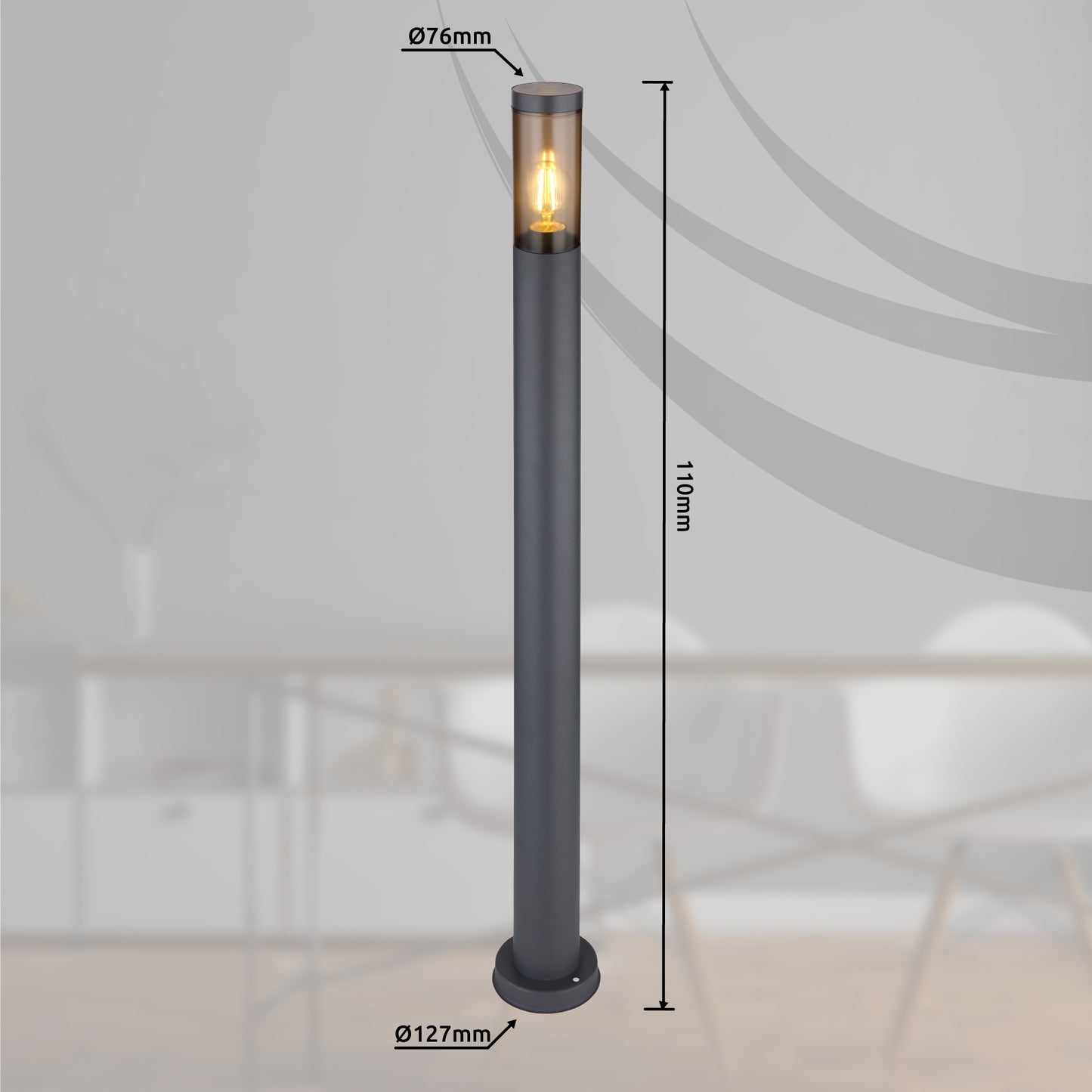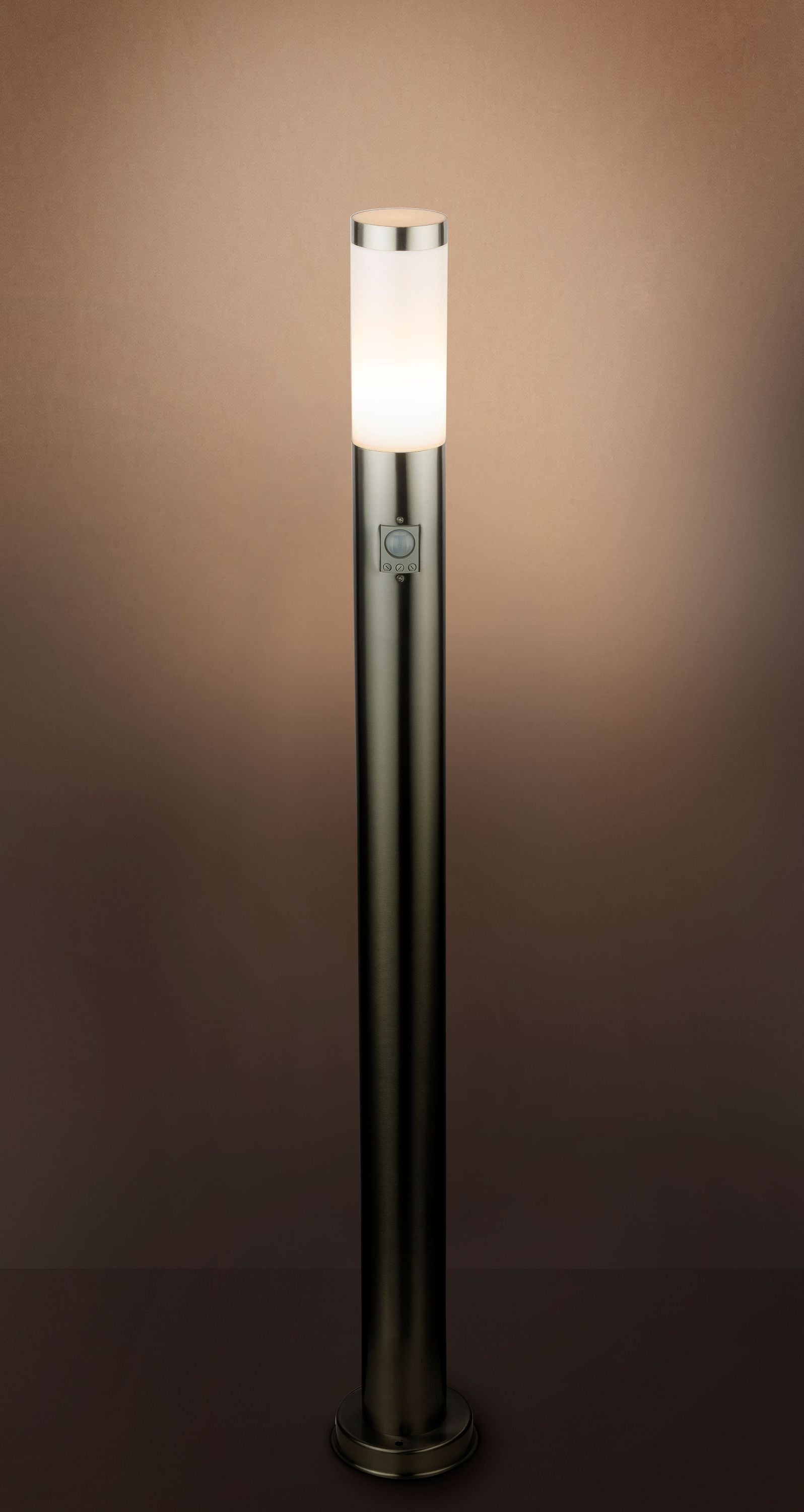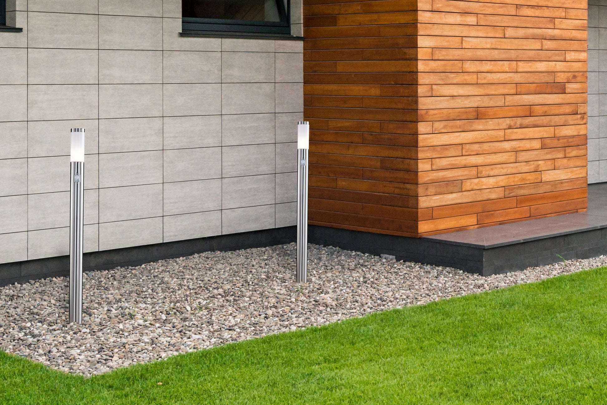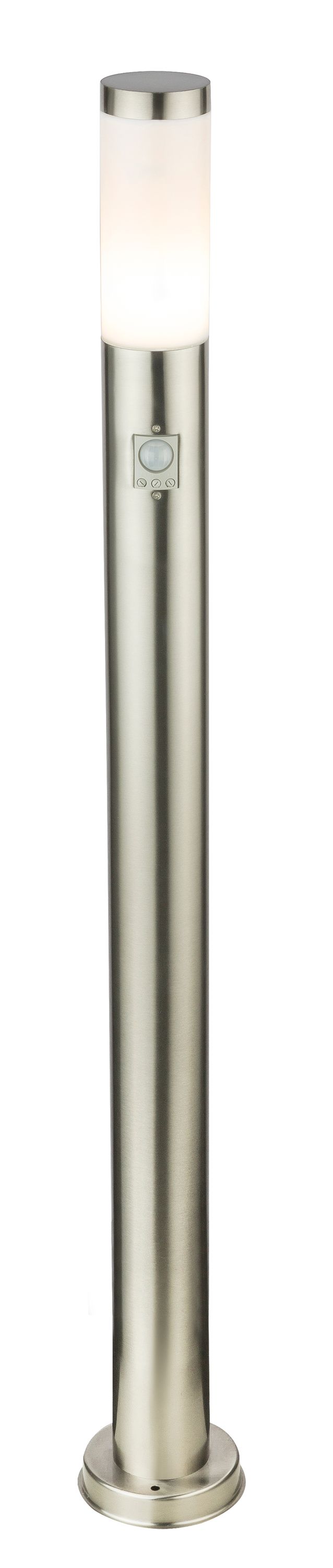 Diese elegante Sockellampe der Serie Boston zeichnet sich durch ihr stilvolles Design und die tolle Verarbeitung aus. Die formschöne Außenlampe ist aufgrund ihrer Schutzart IP44 bestens für den Außenbereich geeignet. Dieses Modell ist aus Edelstahl und opalem Kunststoff gefertigt und hat eine Gesamtgröße von 1,1 Meter. Die Lampe ist mit einer E27 Fassung ausgestattet und ermöglicht Ihnen ein Leuchtmittel (max. 60W) Ihrer Wahl zu nutzen. Auf Grund ihrer Stromersparnis und Langlebigkeit empfehlen wir LED-Lampen. Ein zusätlzlicher Pluspunkt ist der integrierte Bewegungsmelder (90°) mit einer Reichweite von bis zu 9 Meter. Mit weiteren Sockellampen und Wandlampen der gleichen Produktserie kann man das Bild komplettieren.