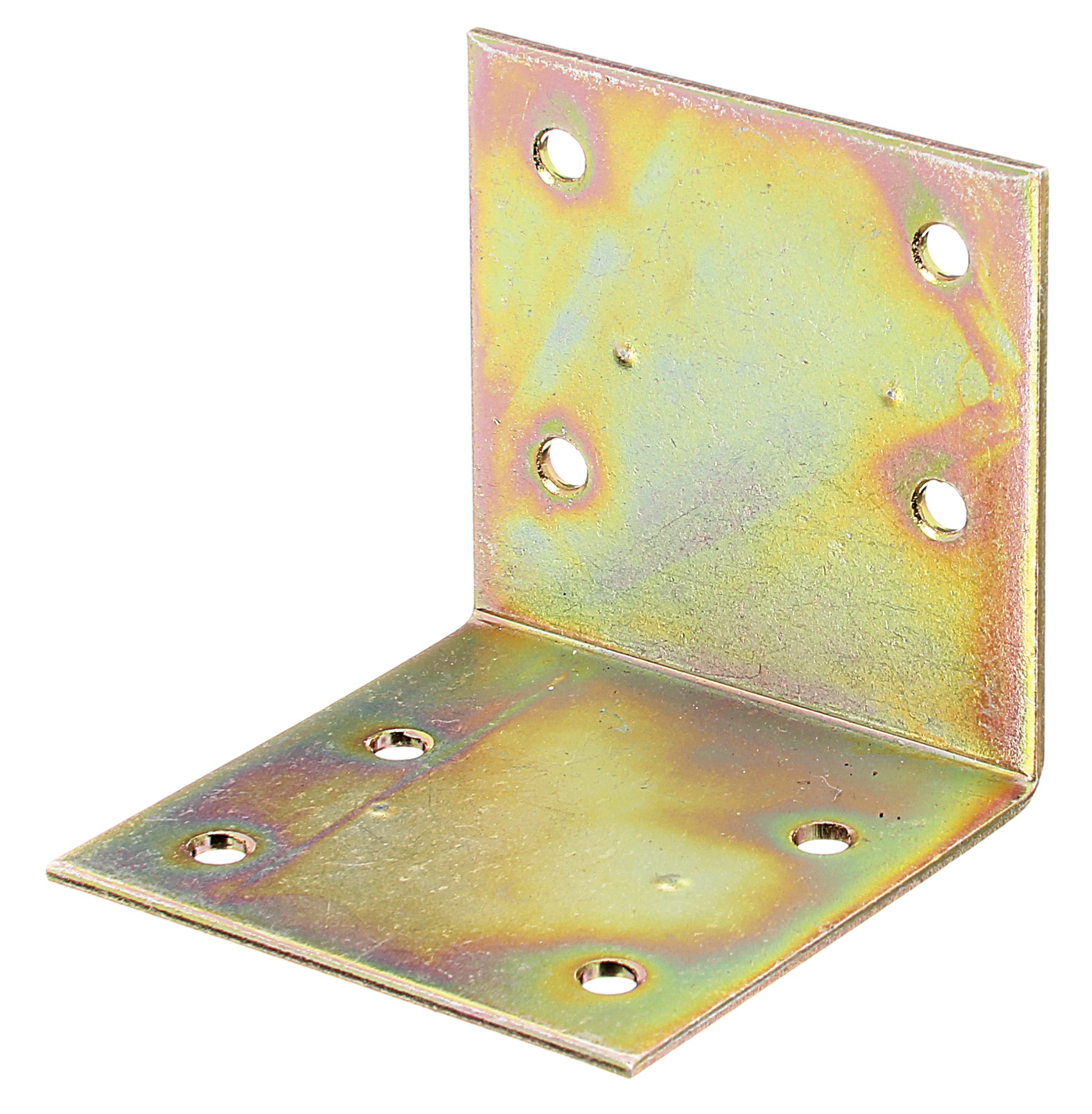 Breitwinkel, gleichschenklig, mit versenkten Schraublöchern, Material: Stahl roh, Oberfläche: galvanisch gelb verzinkt, Tiefe: 60 mm, Höhe: 60 mm, Breite: 60 mm, Materialstärke: 2,00 mm, Anzahl Löcher: 8, Loch: #5 mm, CutCase