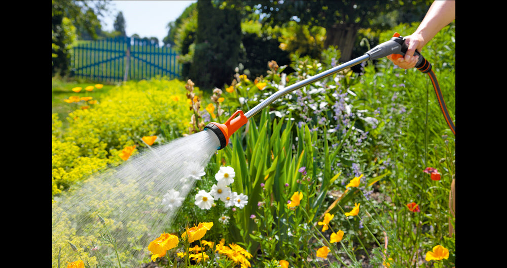 Große Reichweite: Der Gießstab ermöglicht eine effiziente Bewässerung großer Flächen im Garten.