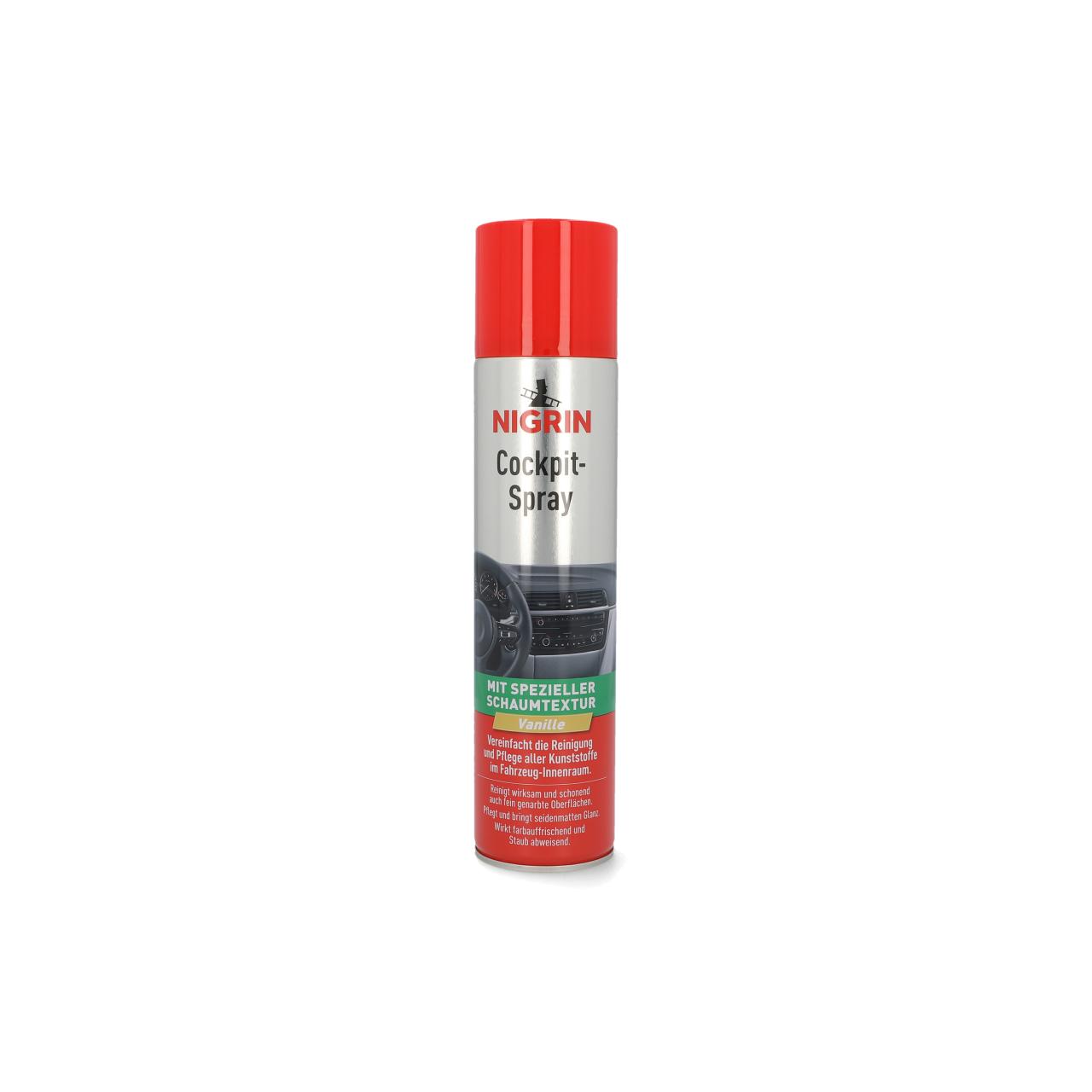 NIGRIN Cockpit-Spray erleichtert mit seiner speziellen Schaumtextur die wirksame und schonende Reinigung und Pflege aller Kunststoffe im Fahrzeug-Innenraum. Der Schaum ermöglicht eine einfache, gezielte Anwendung. NIGRIN Cockpit-Spray bildet einen wasserfesten, seidenmatten, schmutzabweisenden und antistatischen Schutzfilm auf dem Kunststoff und vermindert so Ihren Pflegeaufwand.
