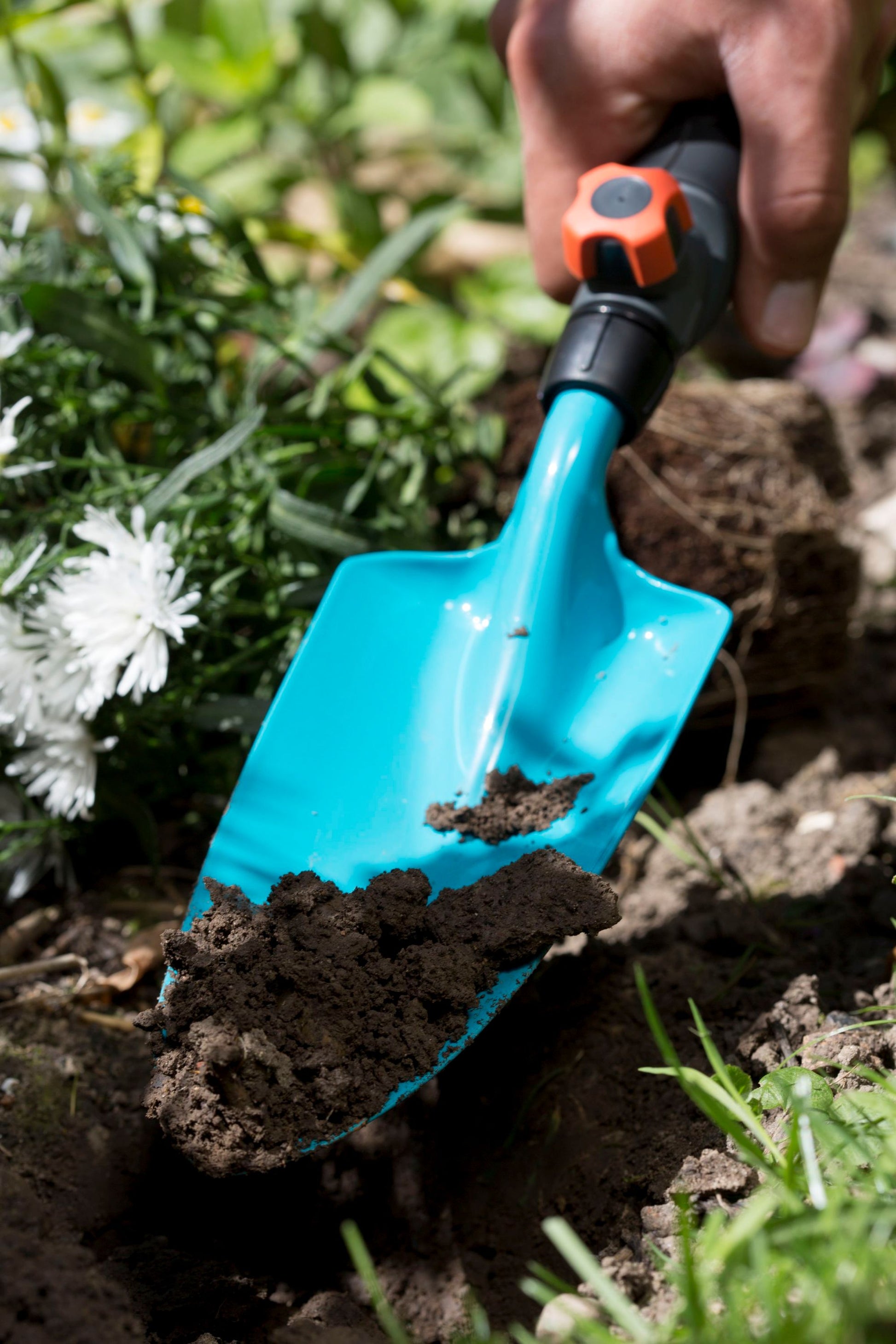 Die Blumenkelle ist mit allen Stielen aus dem GARDENA combisystem kompatibel. Der Stiel kann einfach eingesteckt und festgeschraubt werden.