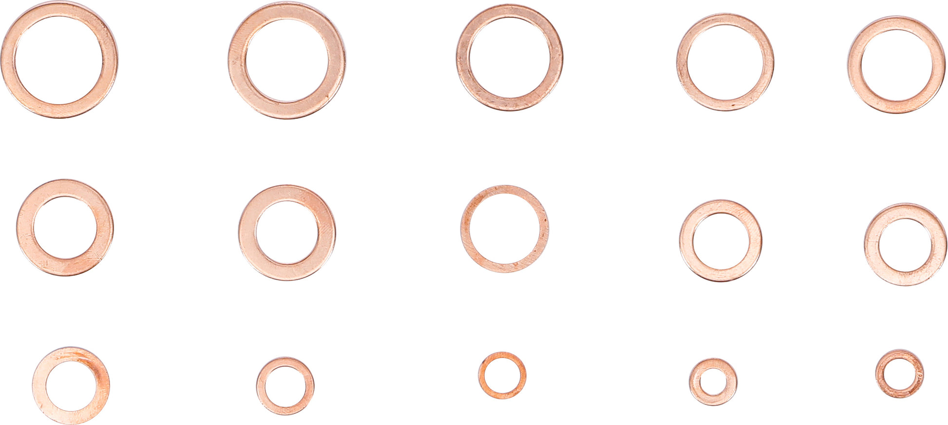 Das Sortiment enthält folgende Kupfer-Dichtringe (oft als O-Ringe bezeichnet, obwohl dies technisch nur eine Form des Dichtrings ist):