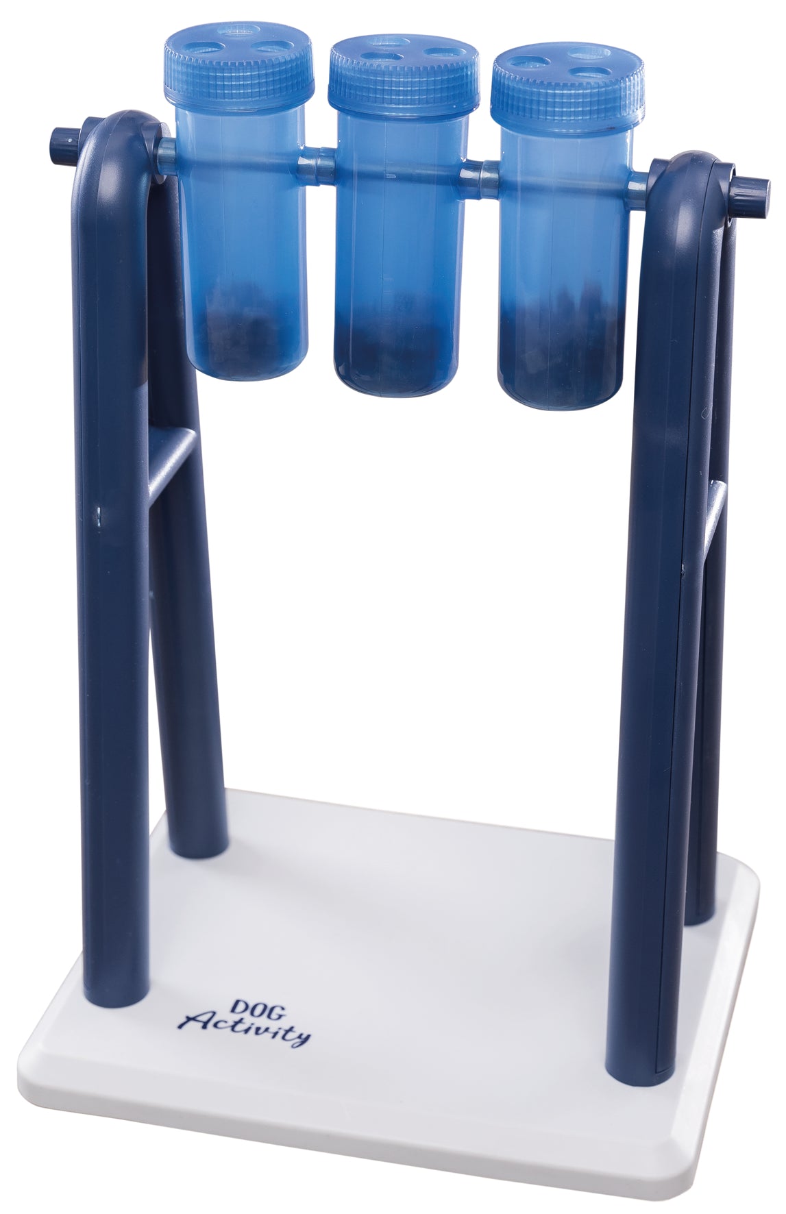Hunde freuen sich über Abwechslung im Alltag. Der „Turn Around“ sorgt dafür, dass deine Fellnase ihren Spieltrieb ausleben kann. Das Dog Activity-Spielzeug besteht aus einem Ständer mit drei drehbaren Bechern und jeweils zwei dazugehörigen Deckeln. Die Becher kannst du mit verschiedenen Snacks befüllen. Ziel ist es nun, dass dein Vierbeiner die Drehelemente mit seiner Schnauze oder Pfote so lange bewegt, bis die Leckerchen herausfallen.