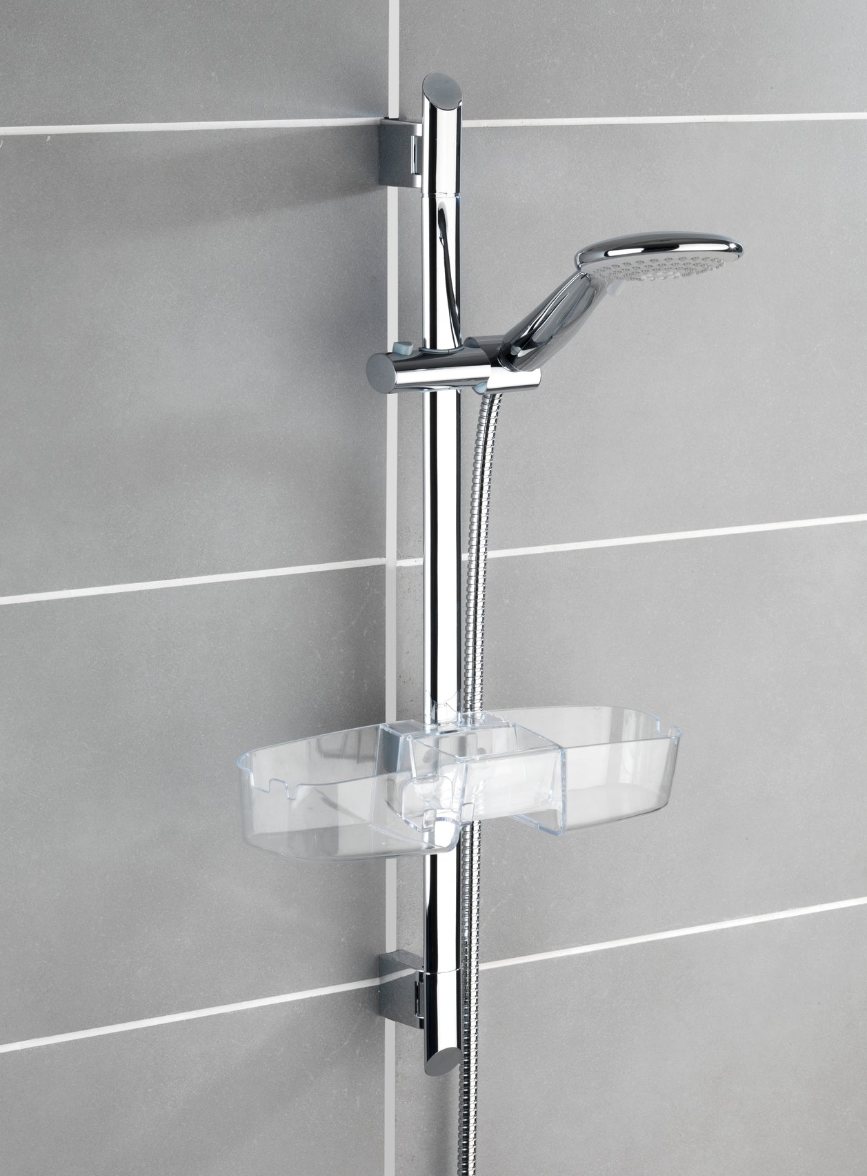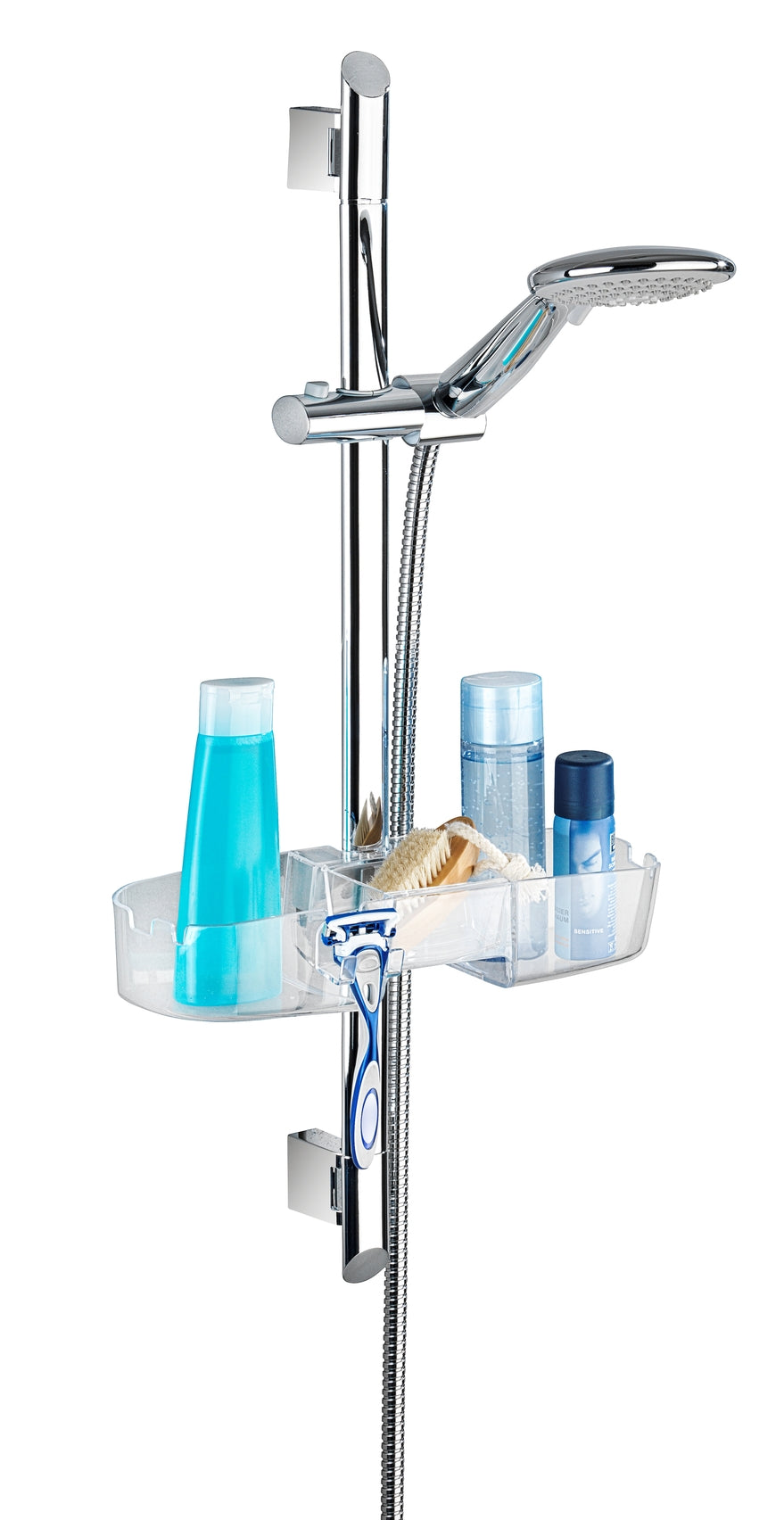Mit dem WENKO Duschstangencaddy Premium können Sie nicht nur Ordnung ins heimische Badezimmer bringen, sondern auch für ein optisches Highlight sorgen. Das Dusch-Regal ist aus transparentem, robustem Kunststoff gefertigt und in einem modernen, ansprechenden Design gehalten. Im Handumdrehen lösen Sie mit dem praktischen Duschcaddy von WENKO jedes Platzproblem in der Dusche. Das Regal wird einfach an der Duschstange - ganz ohne schrauben und bohren - befestigt. Schon bietet das Duschregal in drei Abteilungen viel Platz für Shampoo, Seife, Schwämme oder andere Bad-Accessoires. Am cleveren Haken findet beispielsweise ein Nass-Rasierer eine griffbereite Aufbewahrung. Besonders clever: Der Duschstangencaddy Premium ist passend für alle gängigen Duschstangen durch die variabel einsetzbare Sperre.