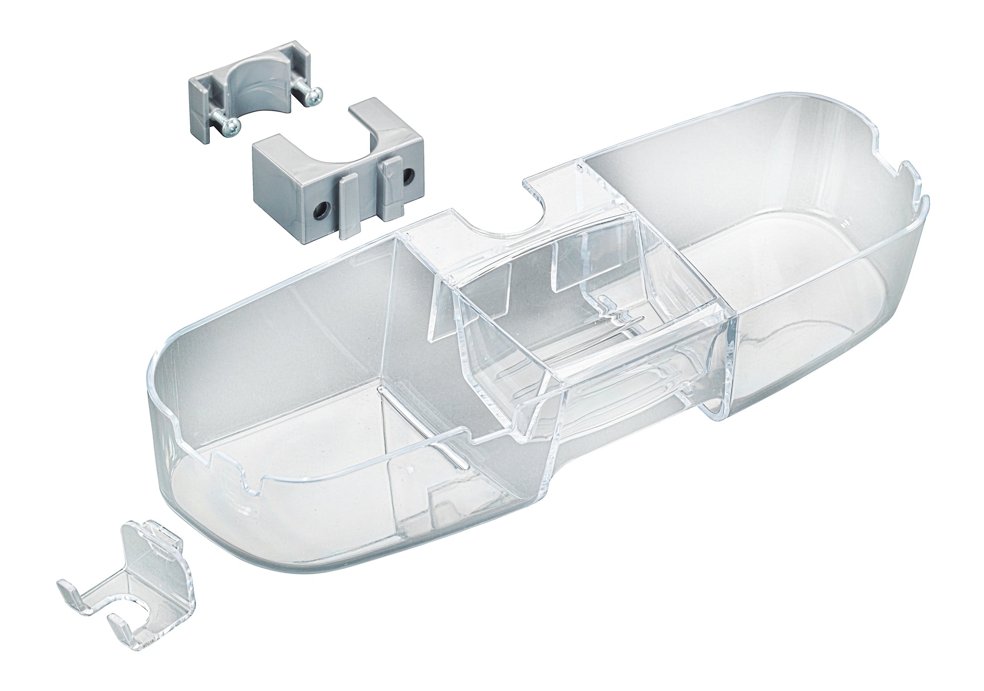 - Aus transparentem Kunststoff mit 3 Fächern und Haken