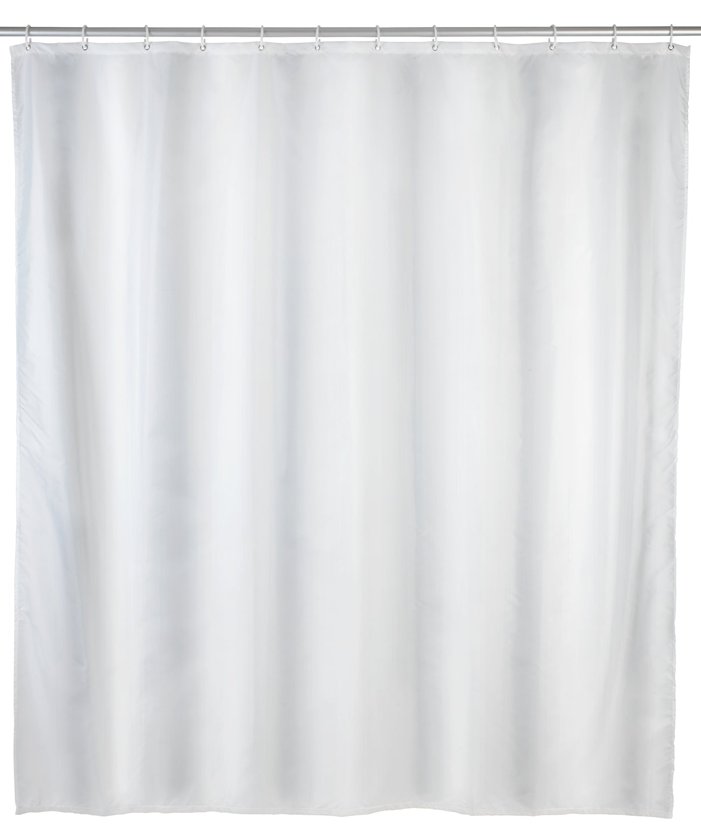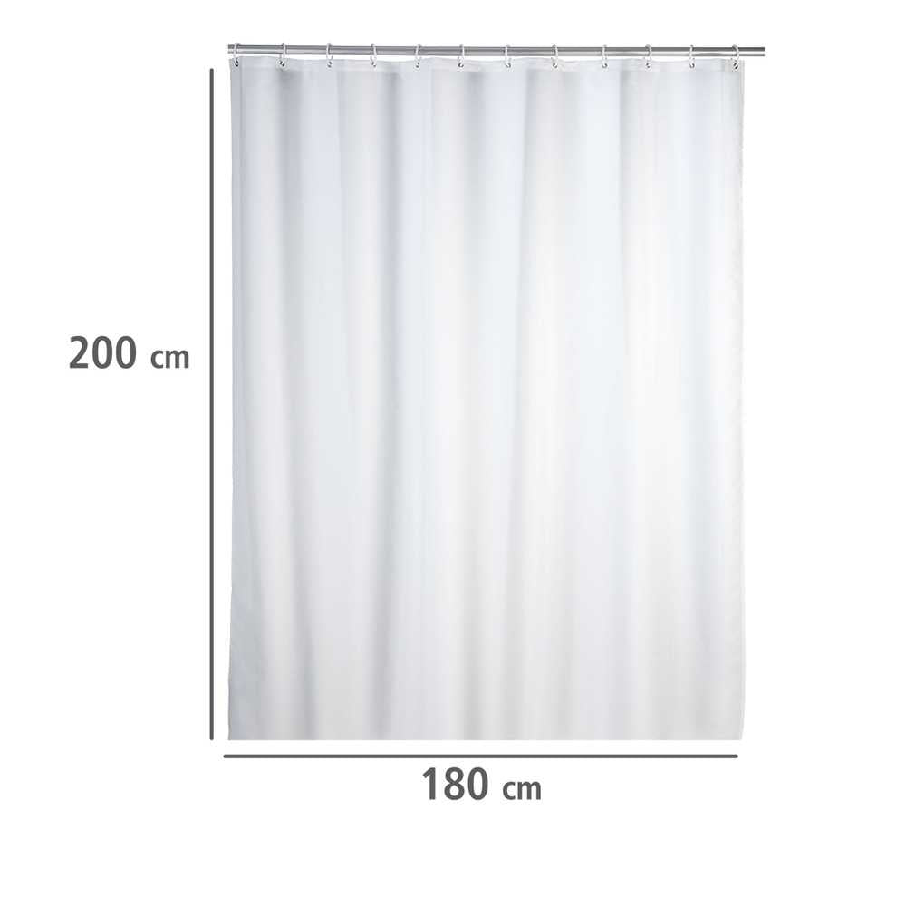 Die Weltneuheit dieses besonderen Vorhangs ist der sensationelle Anti-Schimmel-Effekt! Damit sind die Zeiten von angeschimmelten Duschvorhängen vorbei. Zusätzlich ist der schöne und effektive Helfer auch anti-bakteriell beschichtet. WENKO bringt mit diesem Novum Hygiene und Design ins Badezimmer. Der klassische Vorhang in dezentem Weiß eignet sich mit einer Breite von 180 cm sowohl für Dusche als auch Badewanne. Der hochwertig verarbeitete Duschvorhang ist aus besonders haltbarem Polyester hergestellt. Durch die Oberflächen-Veredelung ist das Material wasserabweisend. Er ist pflegeleicht und bei 30° C waschbar. Der obere Saum ist mit einer verstärkten Lochleiste und rostfreien Metallösen versehen. Am unteren Ende ist ein umweltfreundliches Gewichtsband aus Gummi (statt Bleikette) formgebend. Im Lieferumfang sind 12 weiße Duschvorhangringe aus Kunststoff enthalten.