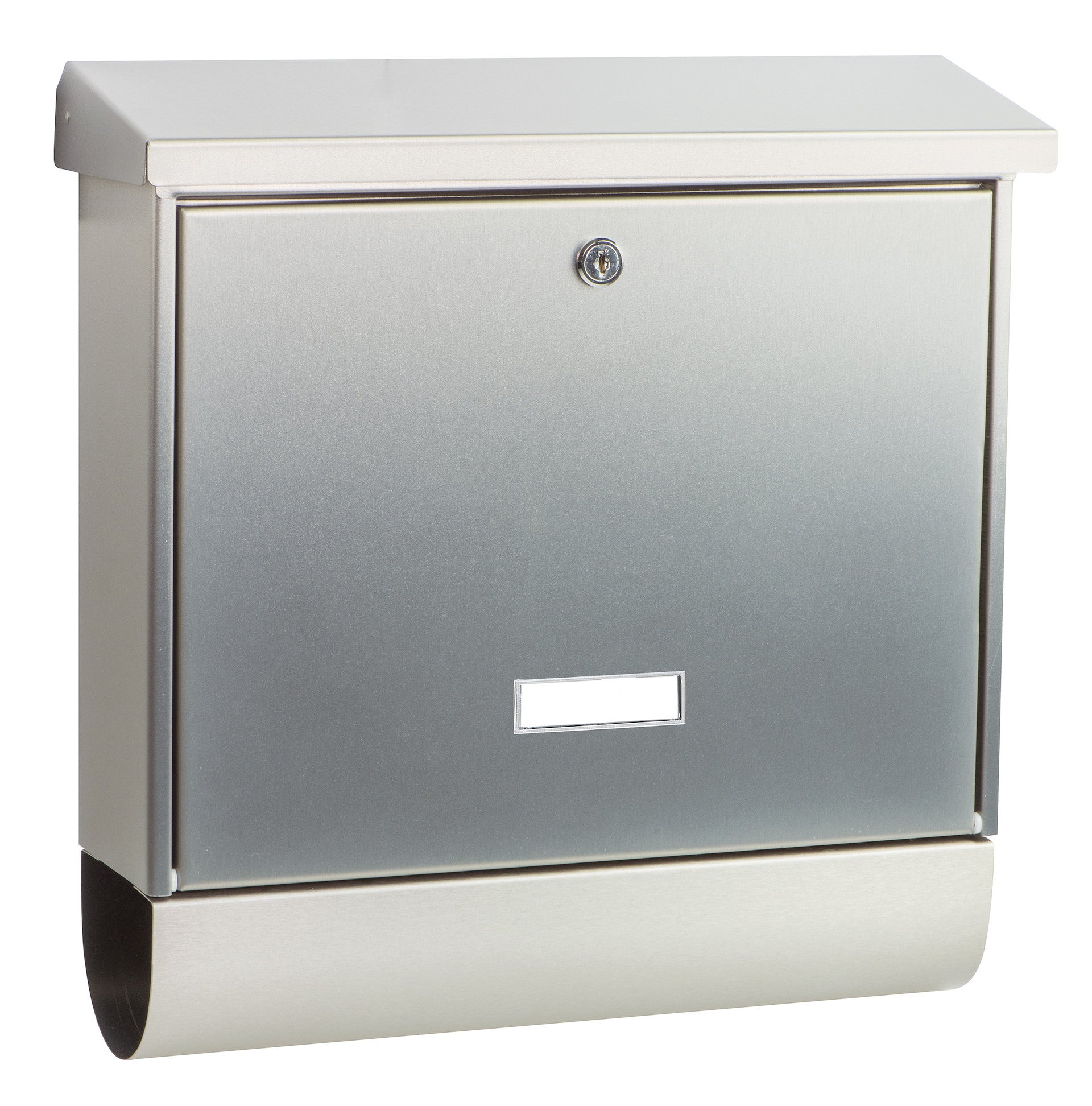 incl. Zeitungsbox, Edelstahl, versiegelt mit transparentem Schutzlack, witterungsbeständig, mit Zylinderschloss, DIN C4, Maße: H 395 x B 380 x T 115 mm