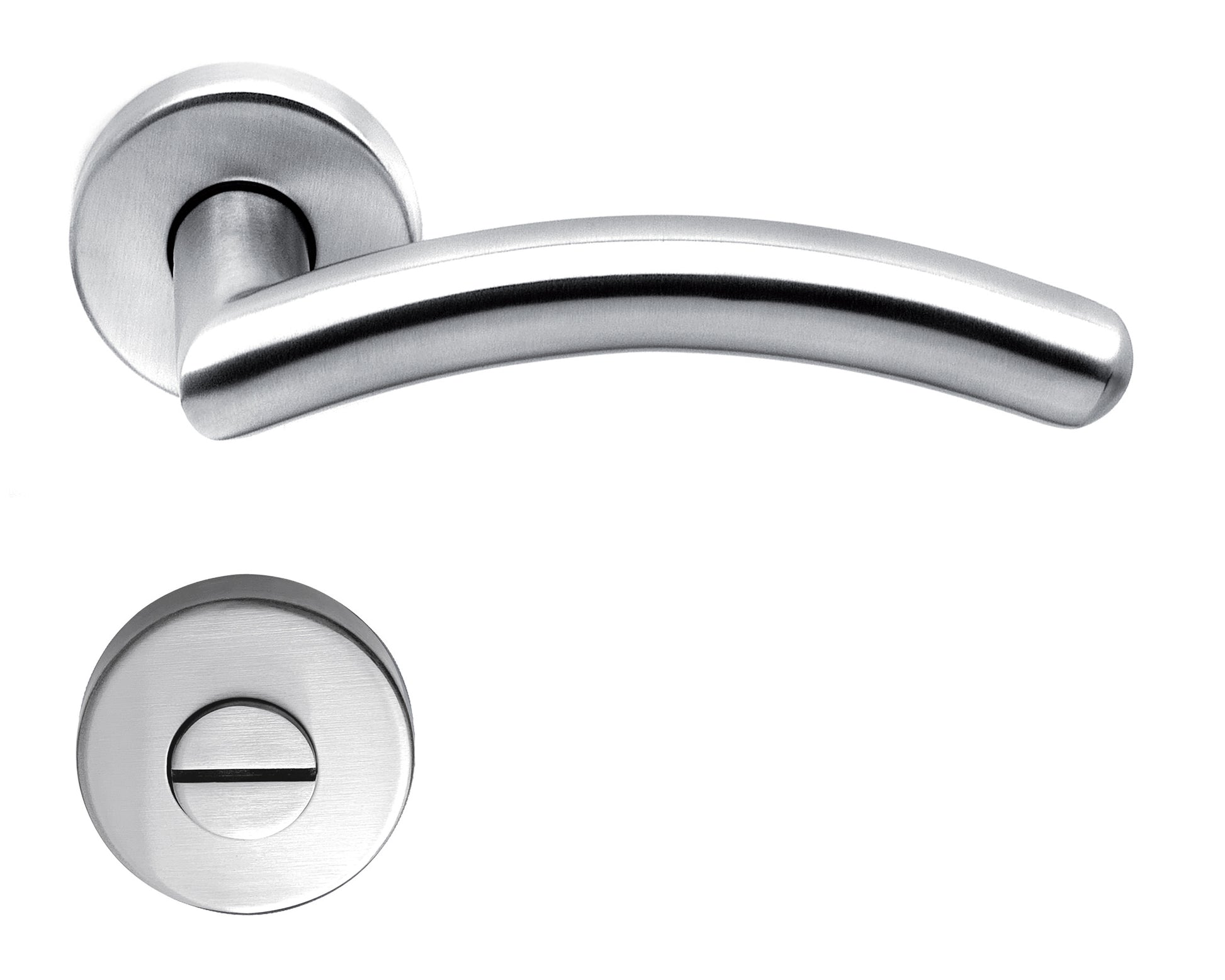Die elegante Rosettengarnitur „Swing“ aus matt gebürstetem Edelstahl bietet eine moderne Lösung für WCTüren. Sie besteht aus zwei Rosetten mit einem Durchmesser von 52 mm und einer Drückerlänge von 130 mm. Mit einer praktischen WC-Riegelanzeige in rot/weiß, ist diese Garnitur ideal für Badezimmer- und WCTüren geeignet. Sie ist für Türen mit einer 8 mm Lochung (BB) konzipiert und wird mit einer Überklipsrosette und einer Hochhaltefeder geliefert, die eine einfache Montage und sicheren Halt gewährleisten. Perfekt für eine stilvolle und funktionale Türgestaltung.
