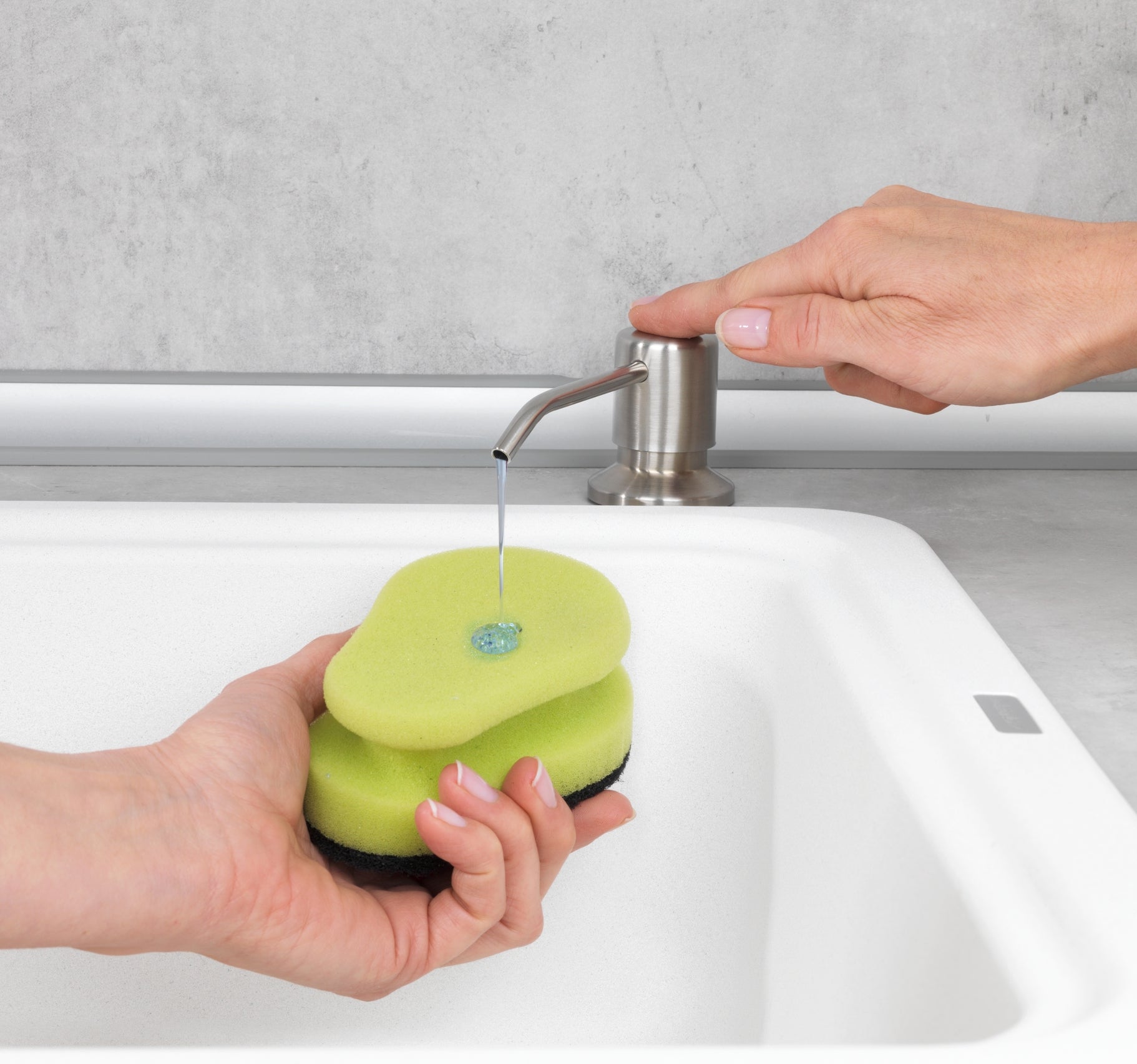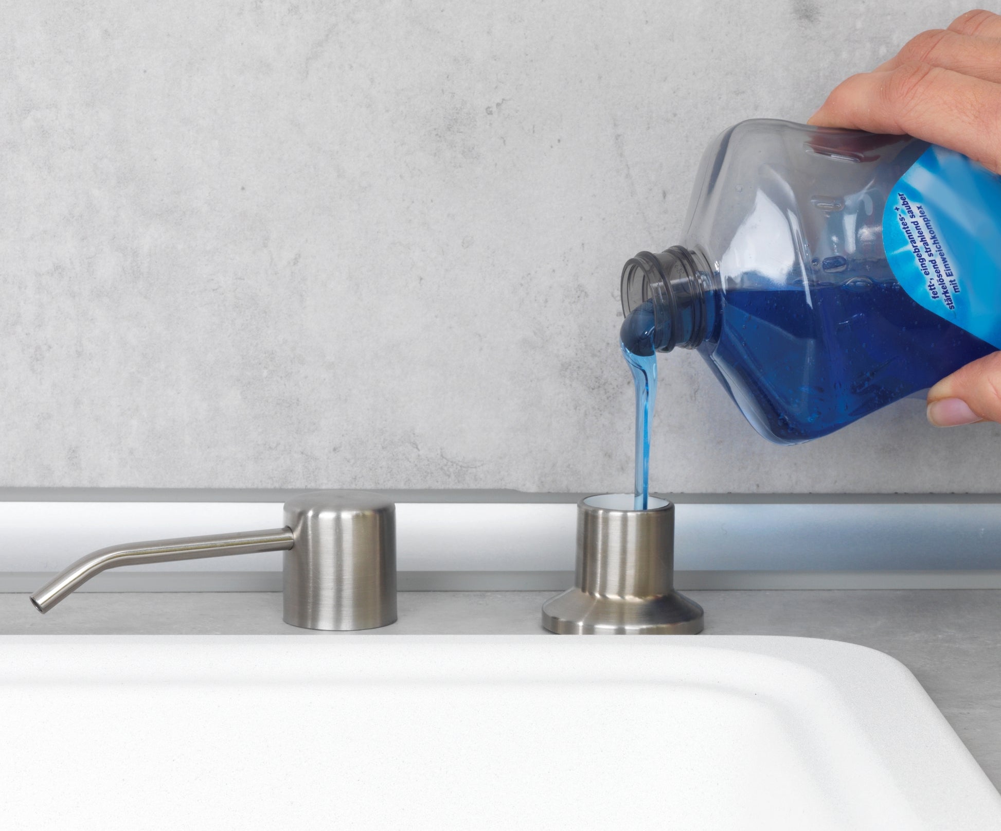- Praktischer und eleganter Spülmittelspender zum Einbau in Spüle und Arbeitsplatte