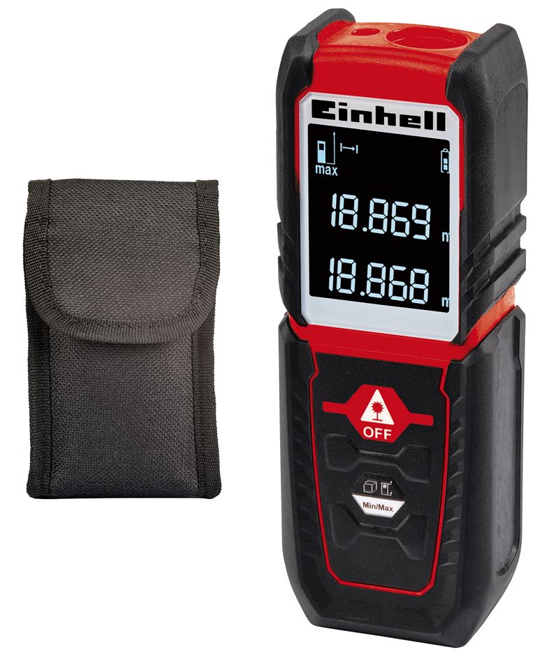Der Einhell Laser-Distanzmesser TC-LD 25 ist ein kleines, handliches Gerät im Hosentaschenformat zum einfachen und präzises Messen von Abständen bis 25 Meter. Mit dem praktischen Messgerät lassen sich Strecken im Handumdrehen ausmessen und Flächen und Volumen berechnen. Es ist ideal für das Ausmessen von Flächen bei Neubau sowie Sanierungs- und Renovierungsarbeiten geeignet, bei der Gestaltung des Gartens oder in der heimischen Werkstatt für ein akkurates Vermessen von Werkstücken. Die Schnittstelle zum Messen ist variabel ab Vorder- oder Hinterkante des Geräts einstellbar. Die Min/Max-Funktion ermöglicht Dauermessungen. Durch den Softgrip ist der Laser-Distanzmesser komfortabel in der Handhabung. Zur Sicherheit trägt die Safety-Funktion bei: der Laserstrahl aktiviert sich erst nach wiederholtem Einschalten desselben. Die automatische Abschaltung erfolgt nach 3 Minuten Nutzungsunterbrechung.