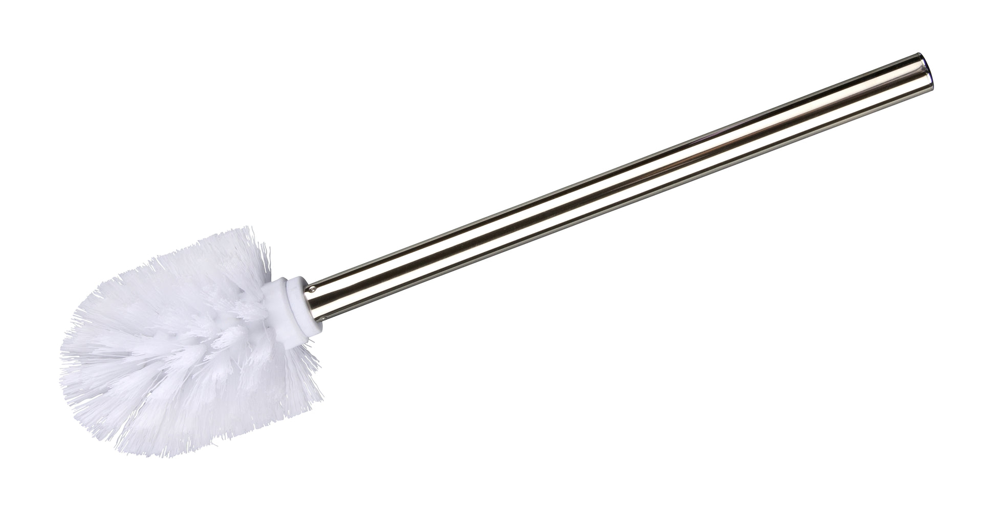 - Weißer Bürstenkopf mit glänzendem Edelstahl-Stiel