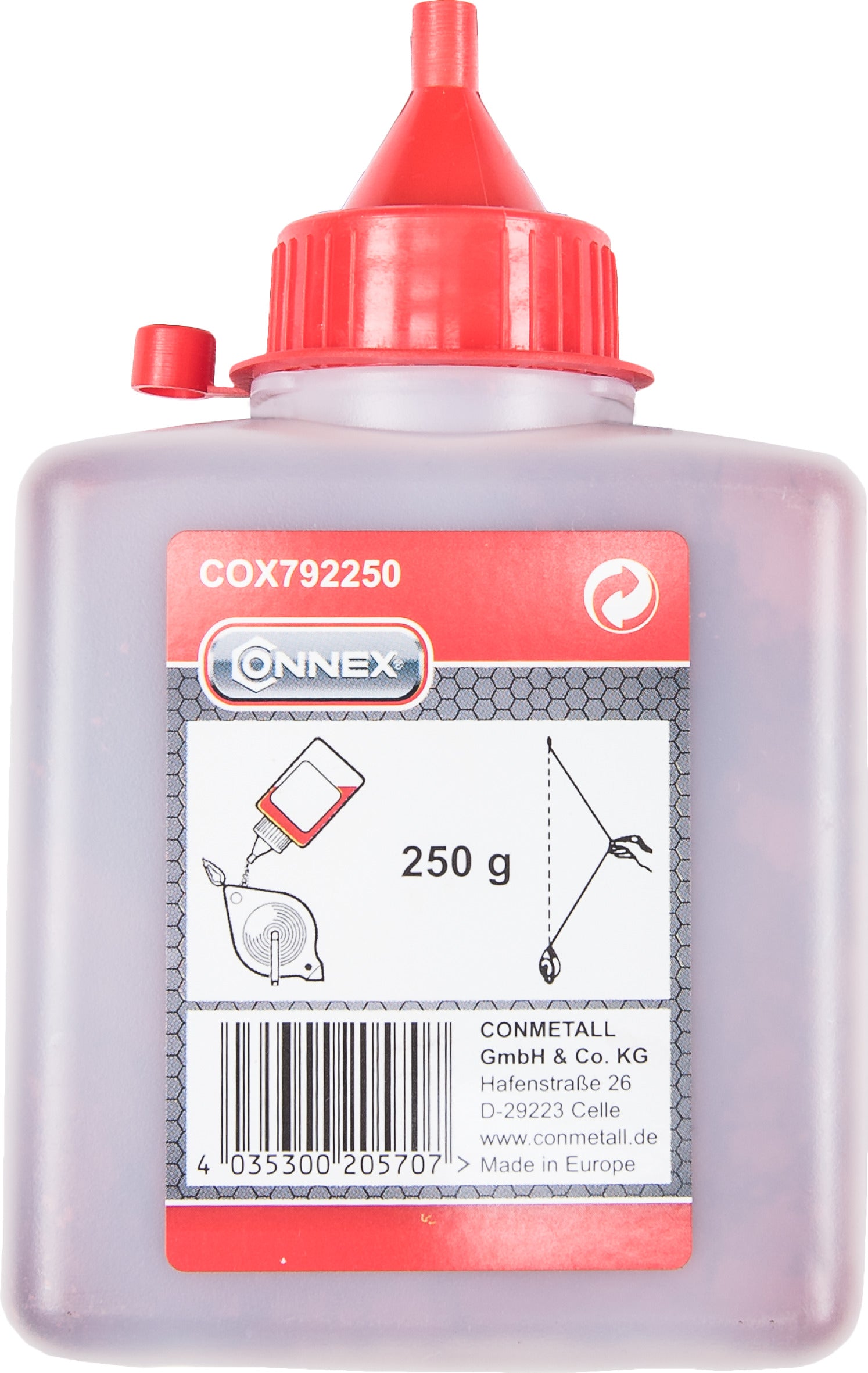 Der Farbpuder 250 g von ConMetallMeister ist ein hochwertiges Werkzeug für professionelle Fliesenleger. Der Farbpuder ist ein feines Pulver, das für die Markierung von Schlagschnüren verwendet wird, um eine exakte Ausrichtung von Fliesen zu ermöglichen. Er ist leicht anzuwenden und sorgt für eine gleichmäßige, saubere Linie. Der Farbpuder ist auch wasserfest und kann somit auch bei feuchten Bedingungen verwendet werden. Er ist in einer 250 g-Dose erhältlich, die ausreichend Farbpuder für viele Anwendungen enthält. Dank seiner Qualität und seiner einfachen Anwendung ist der Farbpuder 250 g von ConMetallMeister eine hervorragende Wahl für professionelle Fliesenleger.