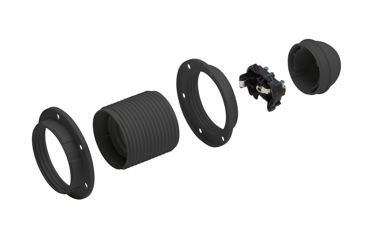schwarz, mit 2 Schraubringen und Metallgewinde M 10 x 1, bis max. 60 W, 250 V~