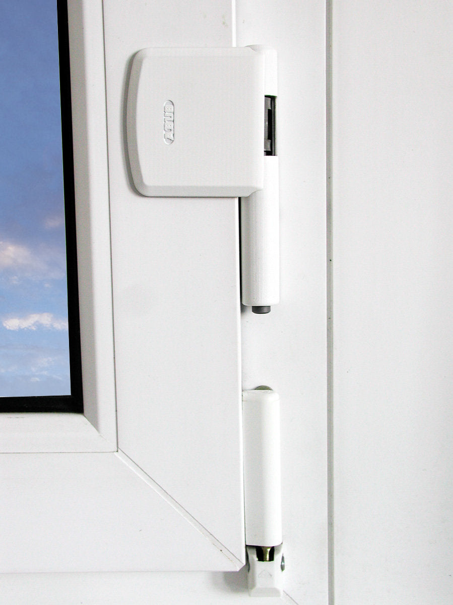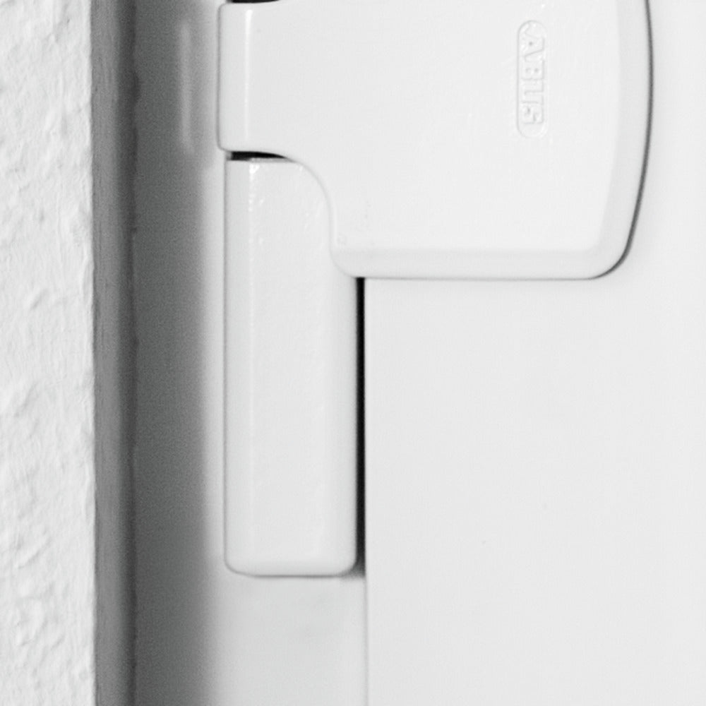 Geringer Platzbedarf zwischen Fenster und Laibung, Komfortable Bedienung durch einfaches Ein- und Ausrasten, Auf/Zu-Position optisch erkennbar, Window Lock FAS101 W B/DFNLI, Scharnierseitensicherung