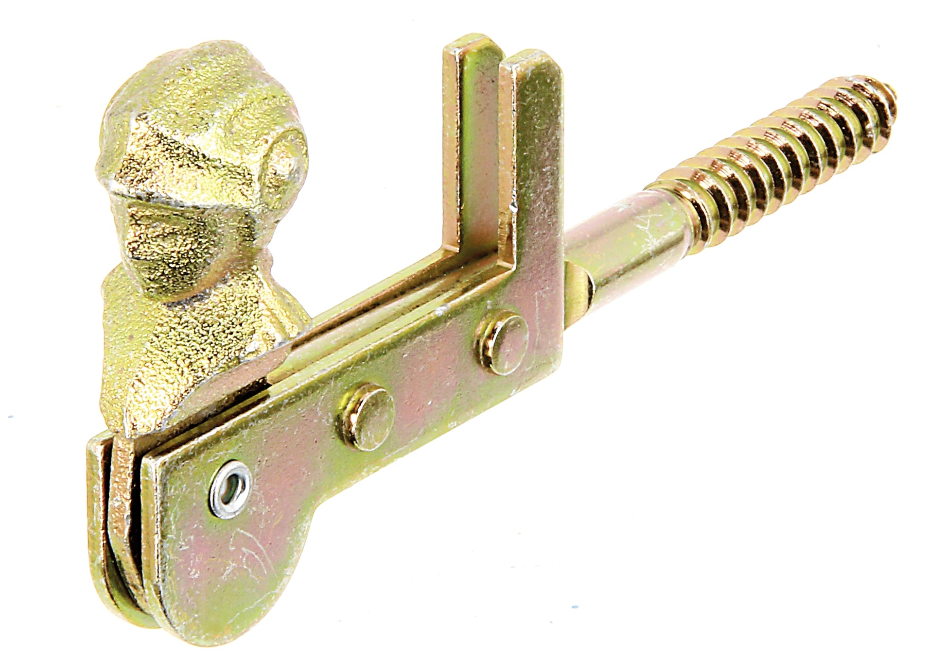 Fensterladen-Feststeller, Frauenkopf, mit Anschlag, Material: Stahl roh, Oberfläche: galvanisch gelb verzinkt, zum Einschrauben, max. Fensterladenstärke: 35 mm, Abstand Innenkante Feststeller - Außenkante Holzgewinde: 115 mm, Holzgewinde-#: 9 x 60 mm