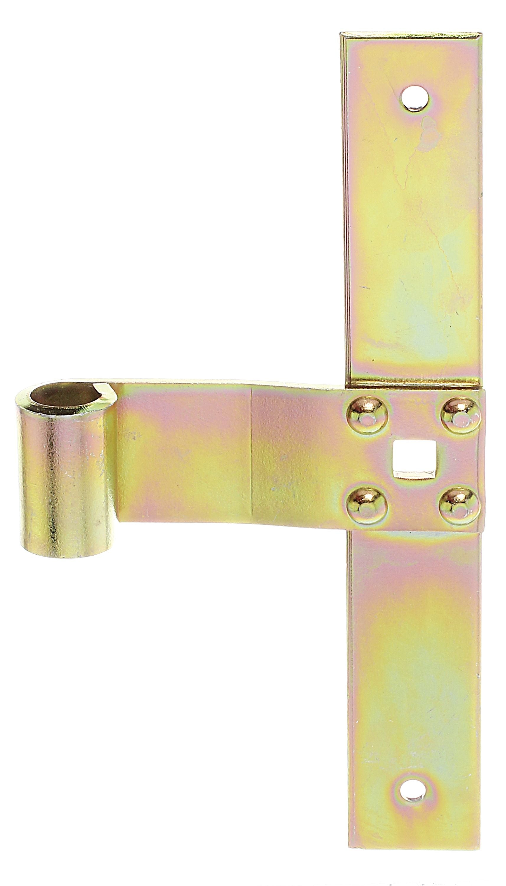 Fensterladen-Mittelband, gerade, Abschluss gerade, Material: Stahl roh, Oberfläche: galvanisch gelb verzinkt, Höhe: 200 mm, Breite: 30 mm, Rollen-#: 13 mm, Abstand Mitte Band - Mitte Rolle: 75 mm, Materialstärke: 3,00 mm, Anzahl Löcher: 2 / 1, Loch: #5,5 / 9 x 9 mm