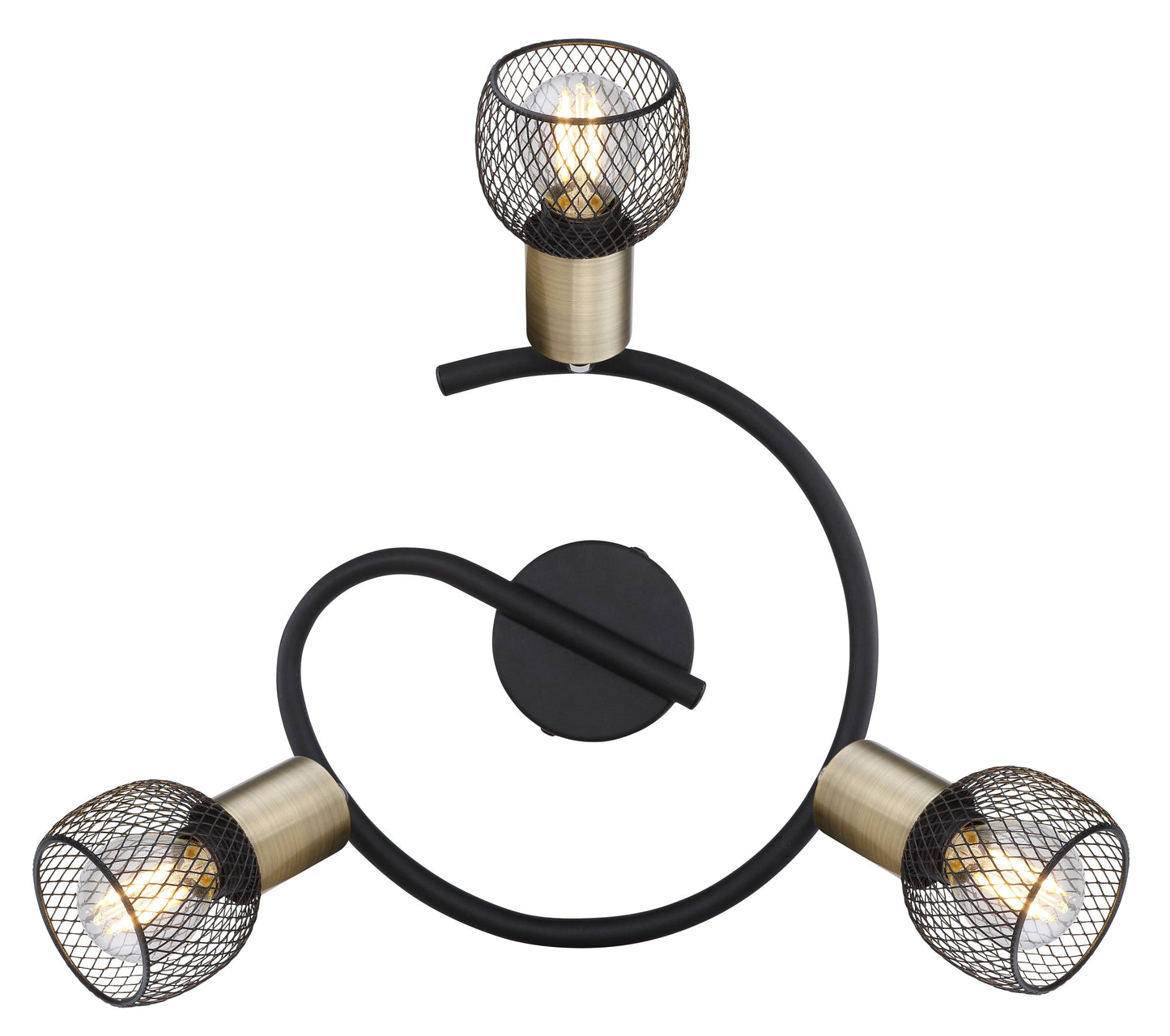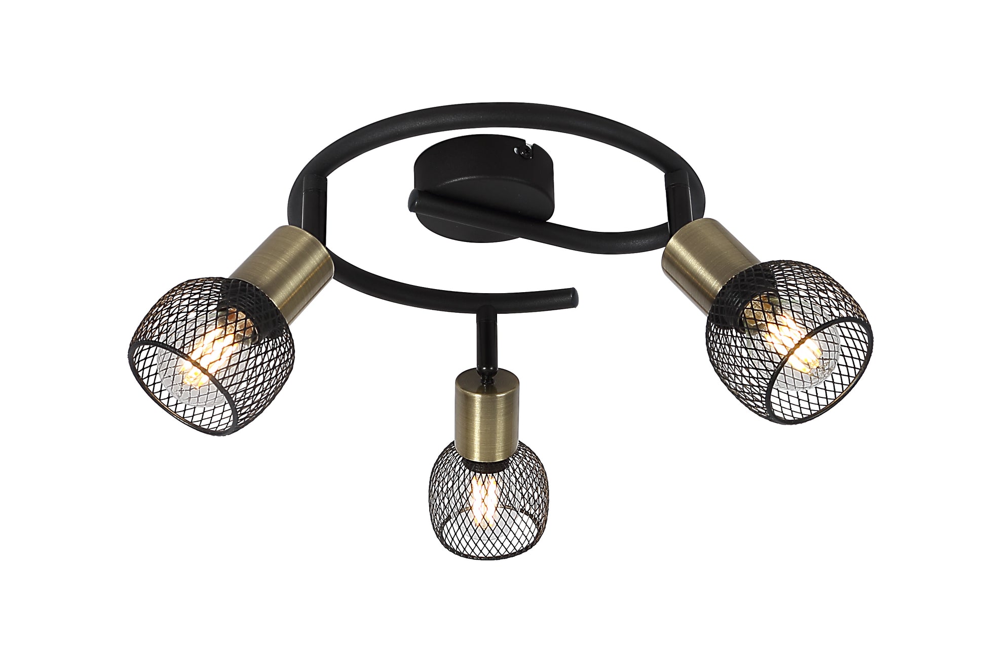 Dieser Deckenstrahler aus der Fiastra-Serie (ø 23 cm) überzeugt durch sein elegantes Design aus schwarz-mattem Metall und Altmessing. Die drei Metallgitterschirme können mit je einem E14-Leuchtmittel Ihrer Wahl bestückt werden. Dadurch haben Sie die Möglichkeit, Lichtfarbe und Helligkeit nach Belieben zu bestimmen und können für ein stilvolles Ambiente in Ihren Innenräumen sorgen.