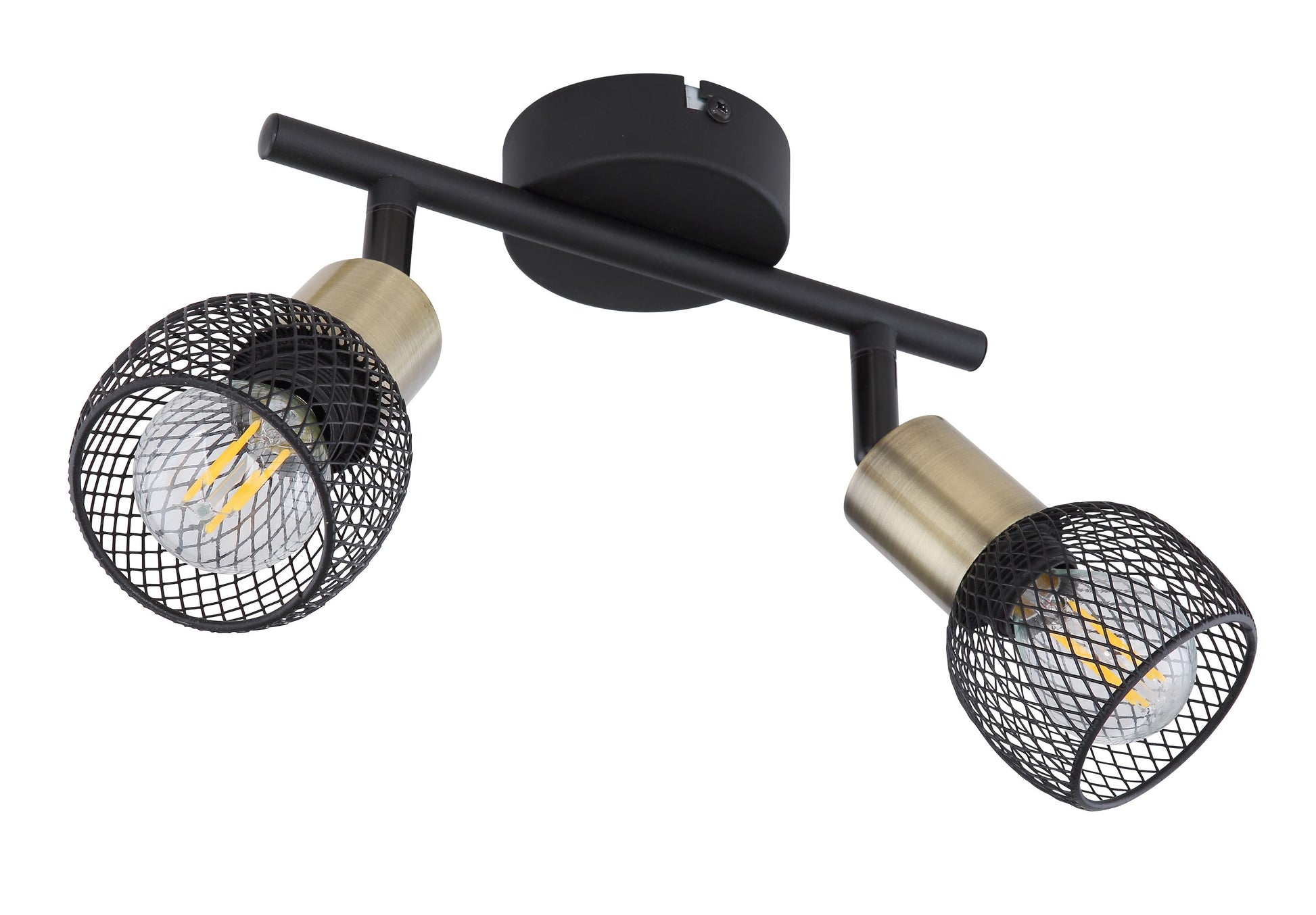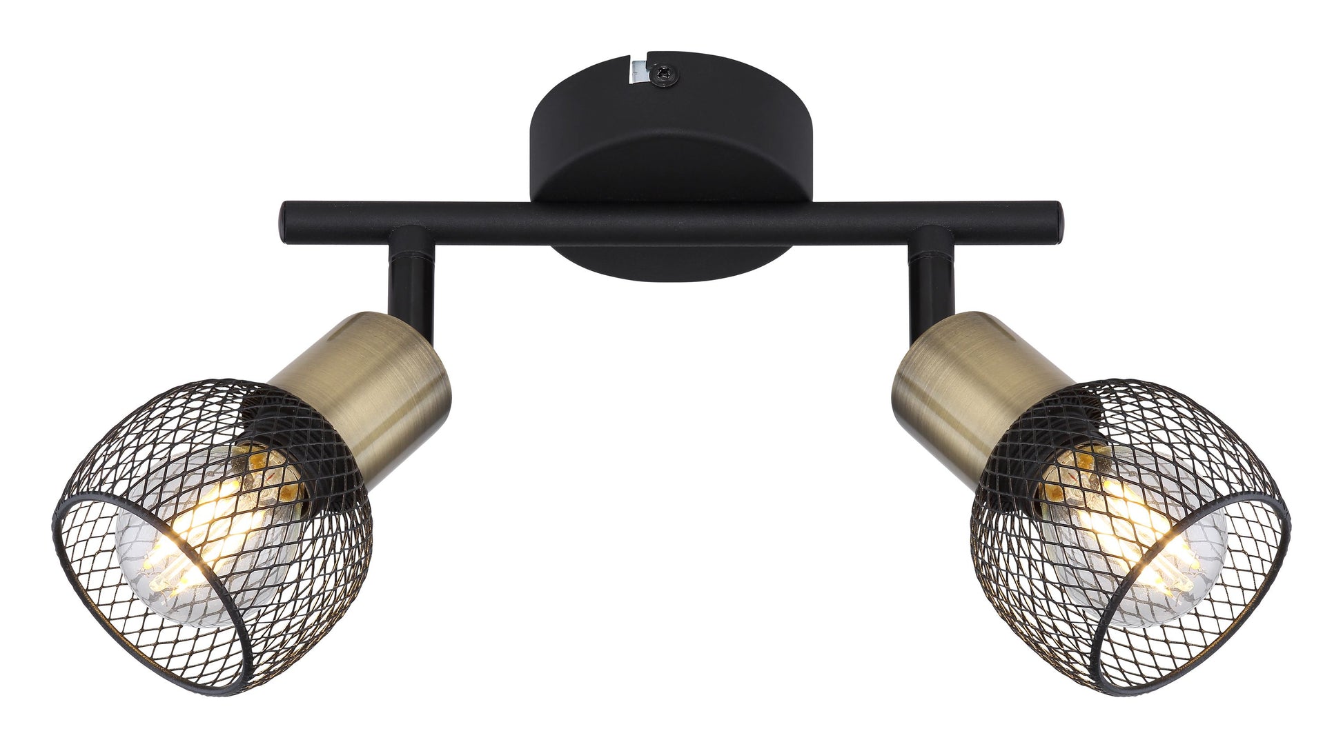 Dieser Deckenstrahler aus der Fiastra-Serie überzeugt durch sein elegantes Design aus schwarz-mattem Metall und Altmessing. Die zwei Metallgitterschirme des 22 cm langen Strahlers können mit je einem E14-Leuchtmittel Ihrer Wahl bestückt werden. Dadurch haben Sie die Möglichkeit, Lichtfarbe und Helligkeit nach Belieben zu bestimmen und können für ein stilvolles Ambiente in Ihren Innenräumen sorgen.