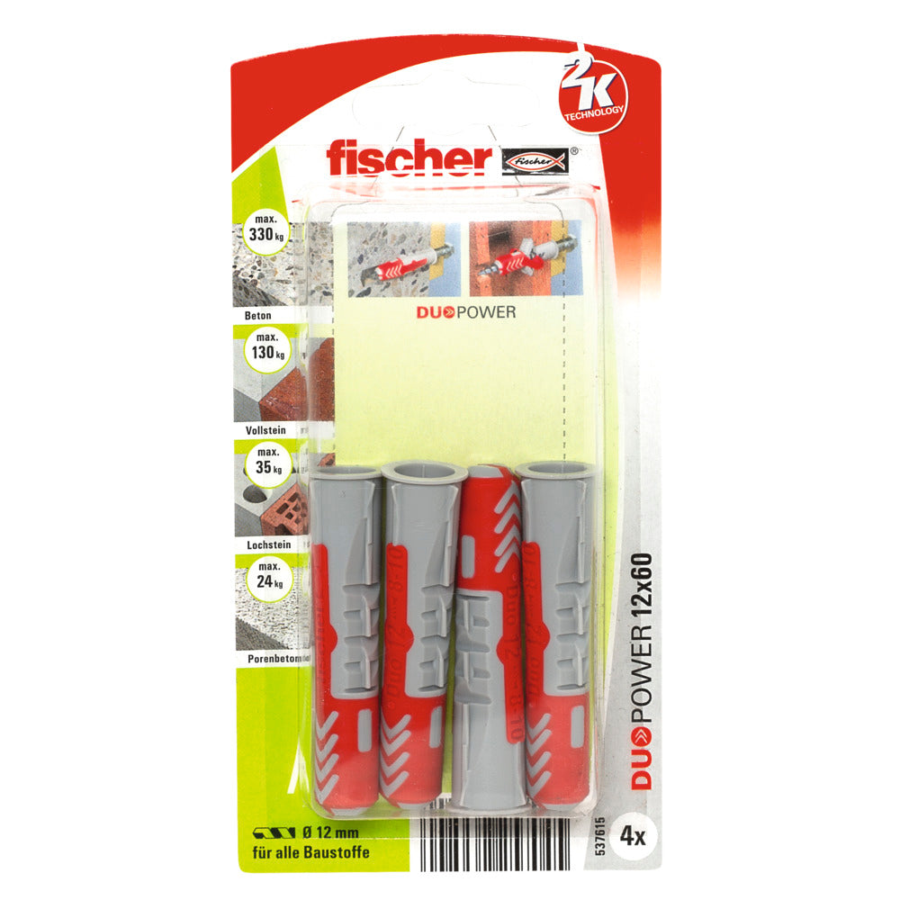 Der fischer DuoPower ist ein intelligenter 2-Komponenten-Dübel mit drei Funktionsprinzipien. Der intelligente Universaldübel ist für Befestigungen in allen Baustoffen geeignet. Dies ermöglicht vielfältige Anwendungen mit nur einem Dübel. Der fischer DuoPower passt sich selbstständig dem Baustoff an und leitet durch die drei Funktionsprinzipien klappen, spreizen und knoten höchste Lastwerte ein. Die sehr gute Rückmeldung des Dübels beim Eindrehen der Schraube schafft ein zusätzliches Plus an Sicherheit. Die fischer DuoPower 6 x 50, 8 x 65 und 10 x 80 sind durch die größere Verankerungstiefe besonders geeignet für Befestigungen in Lochbaustoffen, Porenbeton und zur Putzüberbrückung.
