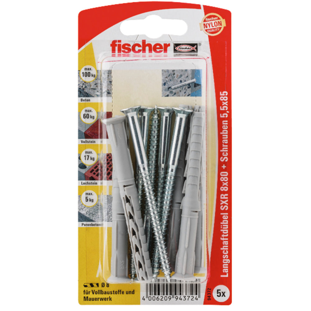 Fischer Langschaftdübel 8x80 mit Senkkopfschraube | 5 Stück