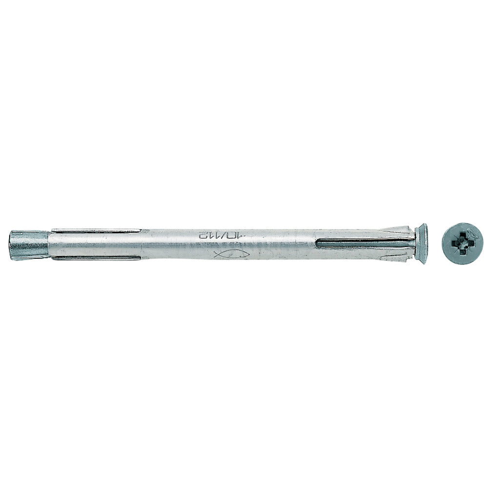 Der fischer Metallrahmendübel F 10 M ist ein Spezialdübel zur spannungsfreien Abstandsmontage von Fenster- und Türrahmen. Dieser besteht aus einer Metallhülse und einer Senkkopfschraube aus galvanisch verzinktem Stahl. Der F 10 M wird zeitsparend in der Durchsteckmontage gesetzt. Beim Anziehen der Schraube wird der Konus in die Dübelhülse gezogen, spreizt auf und verspannt sich gegen die Bohrlochwand. Dadurch wird der Fensterrahmen spannungsfrei in Voll- und Lochbaustoffen befestigt. Der fischer Metallrahmendübel F 10 M ist neben der Befestigung von Fenster- und Türrahmen auch für Kanthölzer geeignet.