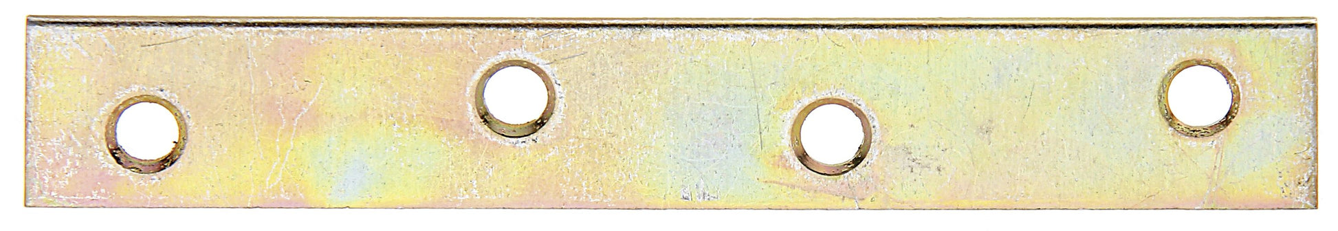 Flachverbinder, mit versenkten Schraublöchern, Material: Stahl roh, Oberfläche: galvanisch gelb verzinkt, Länge: 100 mm, Breite: 15 mm, Materialstärke: 1,75 mm, Anzahl Löcher: 4, Loch: #4,5 mm, CutCase