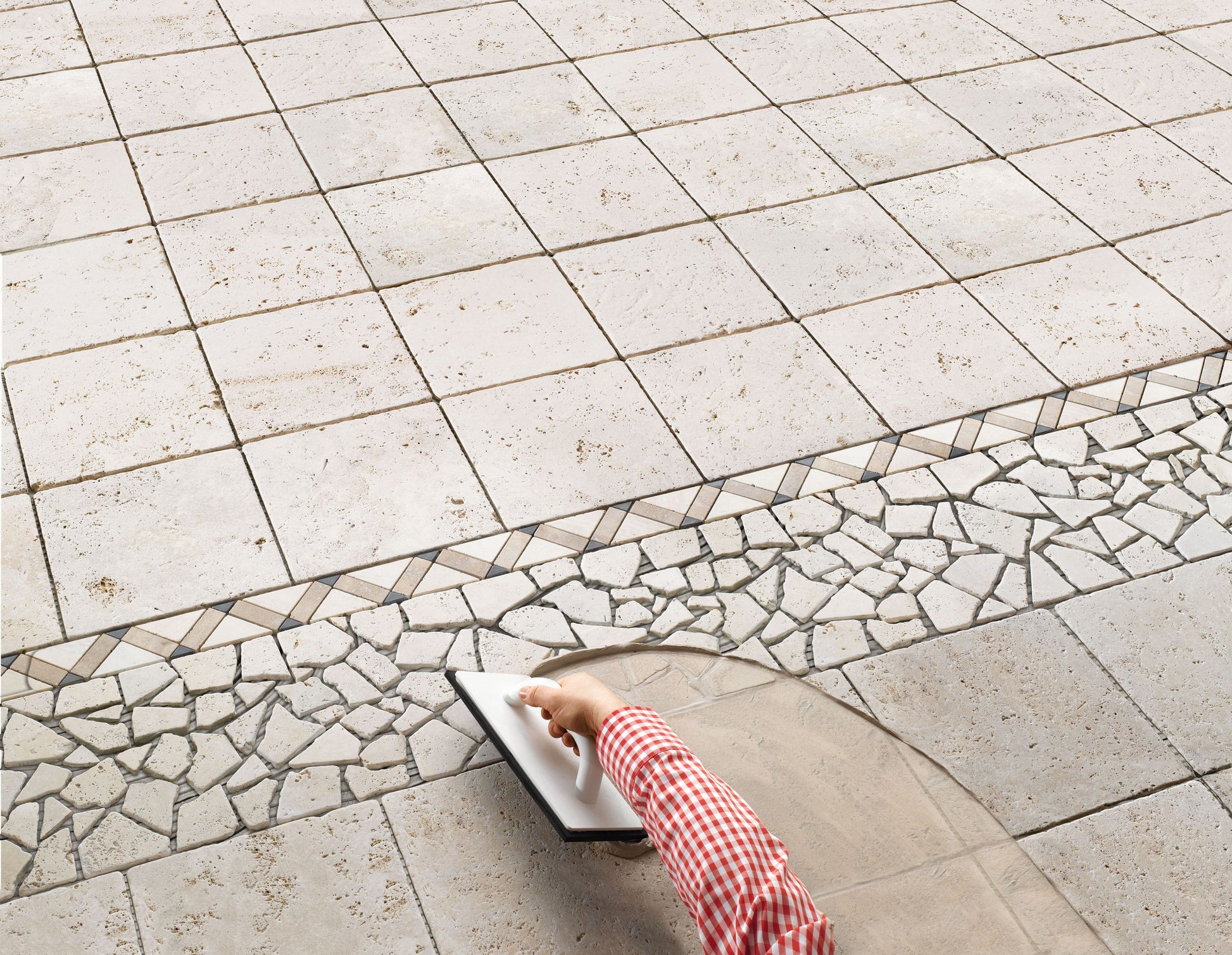 Zum Ausfugen von allen keramischen Fliesenbelägen, insbesondere Steinzeug und Feinsteinzeug, sowie Betonwerkstein, Glasfliesen, Glasbausteinen, Polygonalformaten, Kieselmatten und Natursteinen.