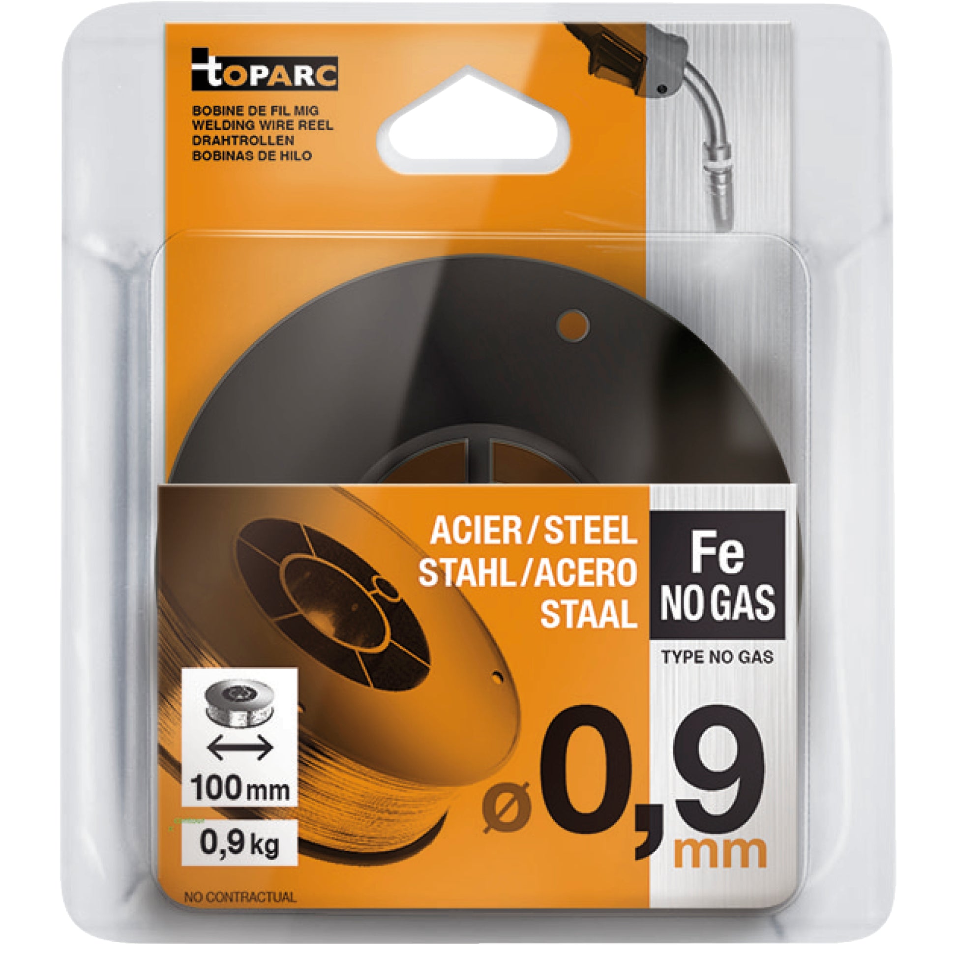 Fülldrahtspule (für gasfreies Schweißen) Ø 100 mm - Stahl - Ø 0,9 mm - 0,9 kg